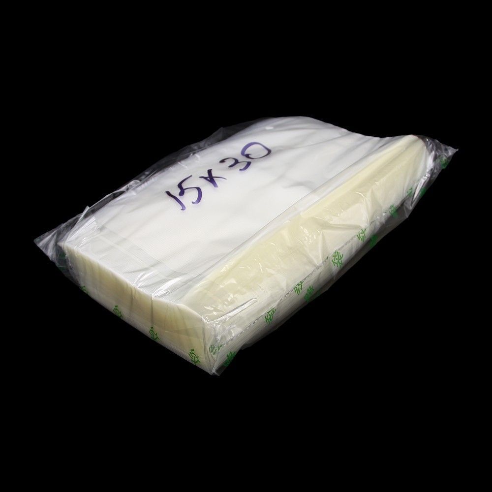 Пакеты для вакуумирования 15х30 см с рельефной структурой изготавливаются из высококачественных полимерных материалов. Такая упаковка – надежный способ защиты промышленных товаров и продуктов питания. Спрессованные предметы удобно транспортировать и складировать благодаря приобретенной компактности. Экономится место в сумке, шкафу, холодильнике, морозильнике. Безвоздушное пространство, создаваемое внутри с помощью бескамерных аппаратов, исключает размножение разного рода микроорганизмов и обеспечивает идеальные условия для содержимого. Удаление кислорода препятствует формированию плесени и бактерий. Откачивание воздуха создает не только барьер для микробов, но и защищает пищу от окисления и обезвоживания при замораживании. Полностью сохраняются свойства заготовок, их вкусовые и ароматические качества, состав витаминов и минералов, а также увеличиваются сроки хранения. Пакеты для вакуумирования подходят для приготовления еды в низкотемпературном режиме с применением технологии Sous vide, делая блюда нежными и