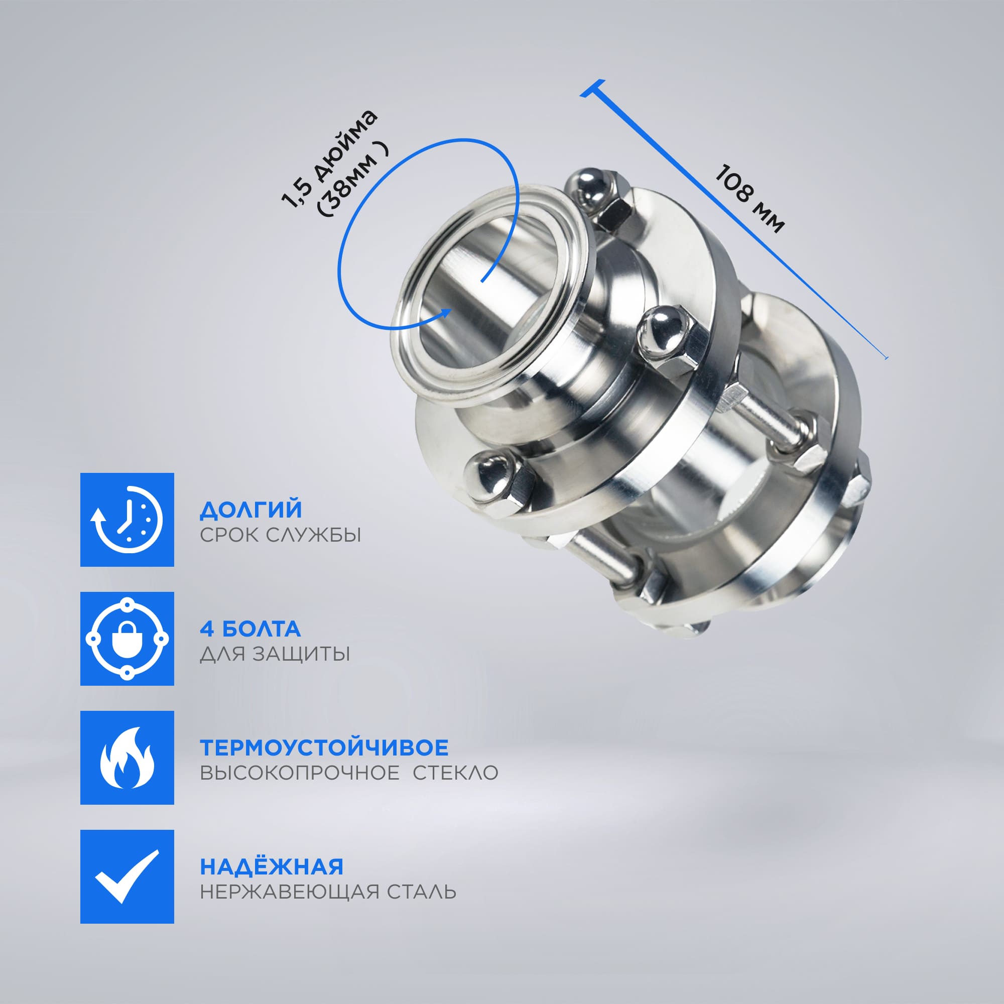 Диоптр 38 мм (мини) помогает вести визуальный контроль за процессом дистилляции и ректификации алкоголя в домашних условиях. Поскольку определить, что именно происходит внутри контура аппарата только по показаниям термометров достаточно сложно, использование диоптра дает возможность оценить происходящие внутри процессы. Недостатком традиционных диоптров является увеличение высоты самогонного аппарата, что критично при работе на кухне с обычной плитой и вытяжкой над ней. Если купить диоптр 38 мм (мини), он незначительно увеличит общие габариты оборудования и не потребует вносить изменения в компоновку рабочего места мастера домашнего самогоноварения. Устройство изготовлено из нержавеющей стали и жаростойкого стекла, устойчивого к любым температурам, возникающим при ректификации или дистилляции. Соединяется с другими модулями самогонного аппарата при помощи кламповых соединений, клампы и прокладки можно заказать в нашем магазине. Существенно упрощает работу с оборудованием новичкам.
