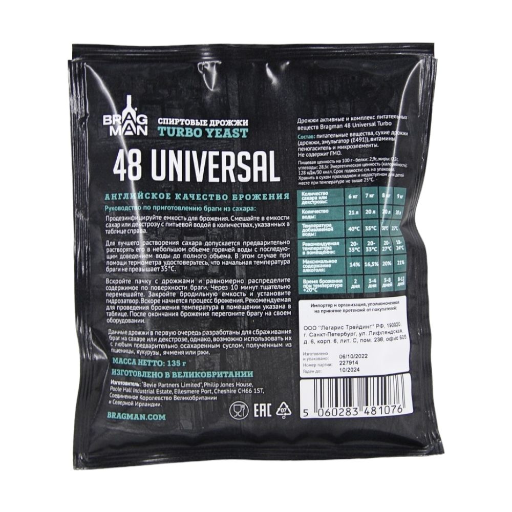 Спиртовые дрожжи Bragman "48 Universal", 135 г