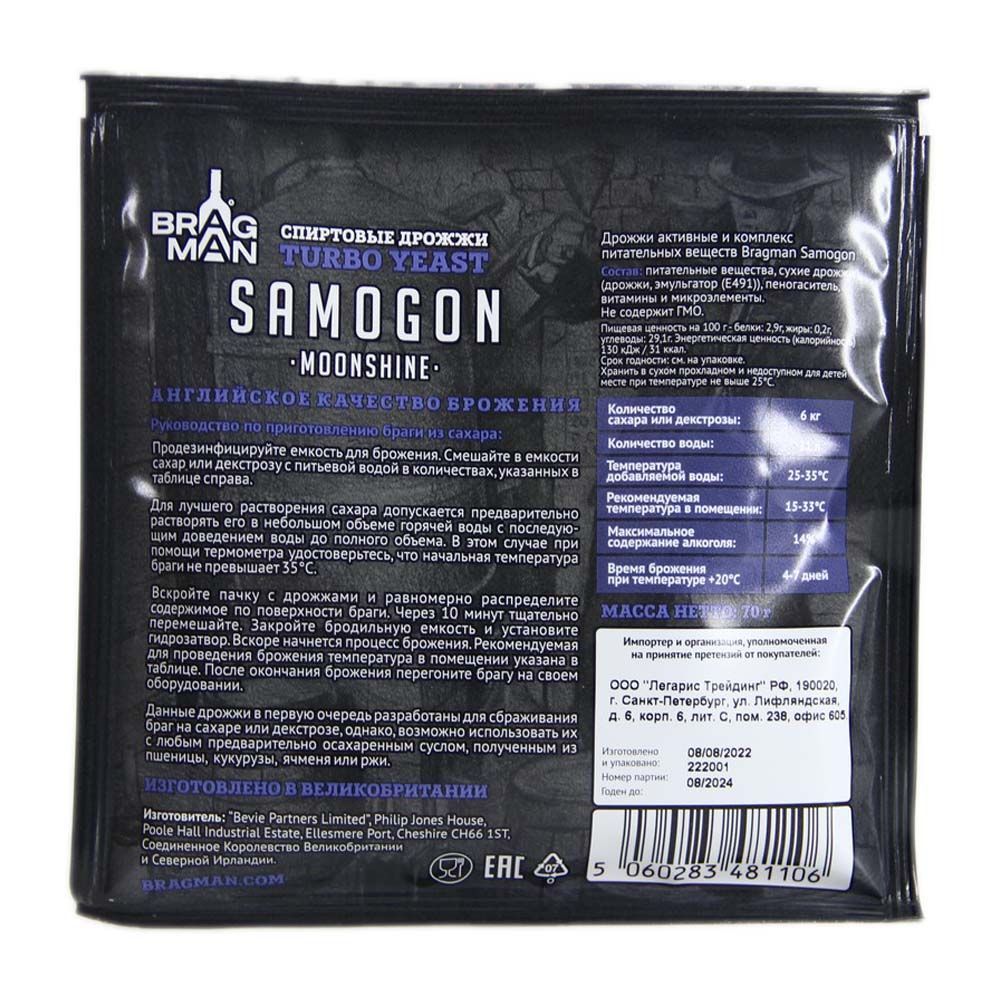 Спиртовые дрожжи Bragman "Samogon", 70 г.
