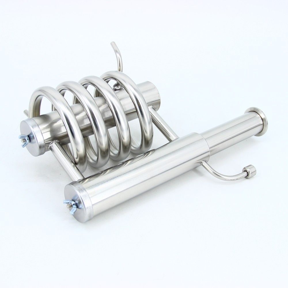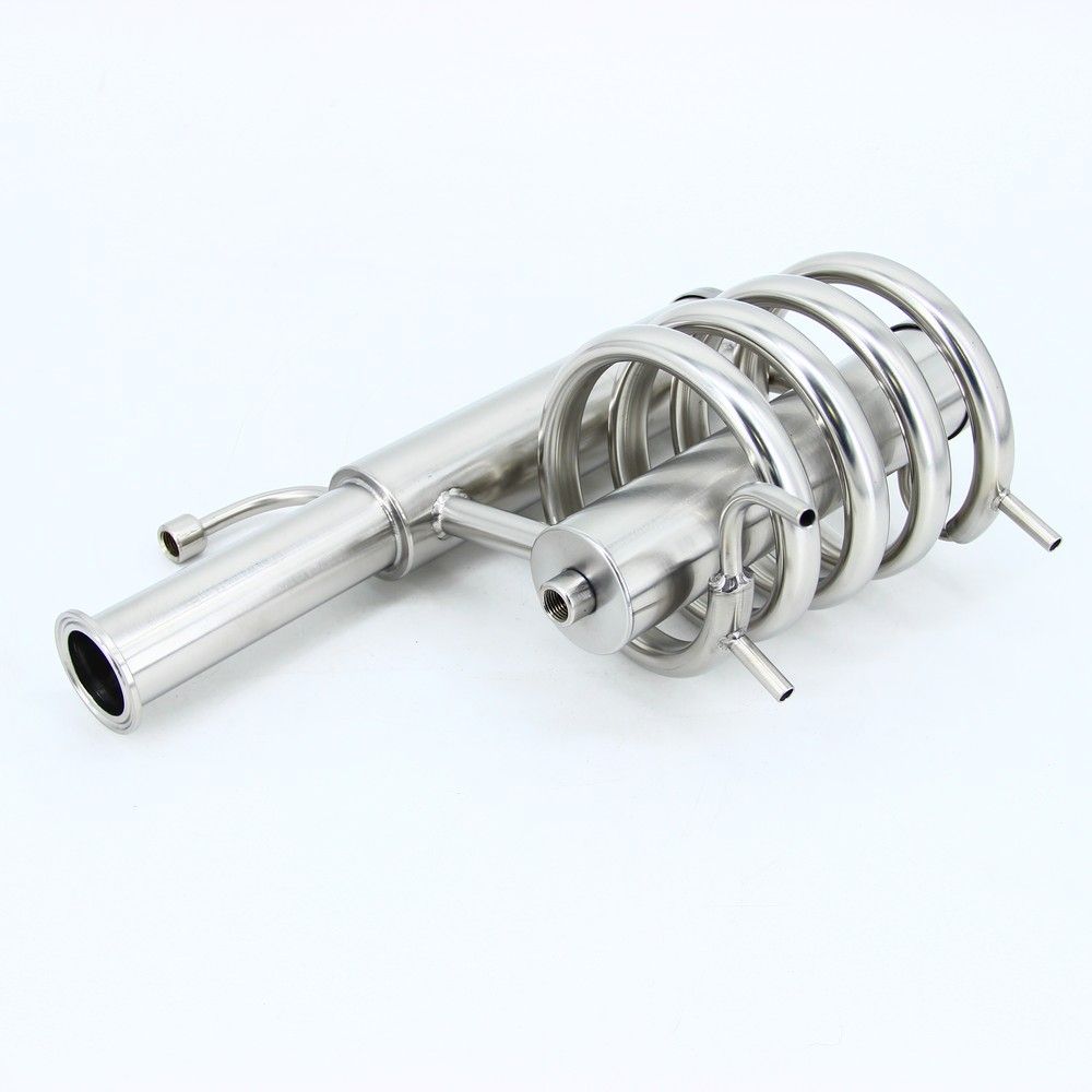 Разборная колонна бражная «Ханхи» с креплением под кламп 1.5" из пищевой нержавеющей стали является промежуточным звеном между дистиллятором и ректификационной установкой. То есть, представляет разновидность первого устройства с элементами второго. Данная модель используется для качественной очистки браги и укрепления спиртовых паров. При правильной эксплуатации на двойном перегоне дает возможность получить продукт крепостью до 95° – практически чистейший спирт с хорошим выходом и минимальным содержанием примесей. При этом сохраняются запах и привкус исходного сырья. Возможна дополнительная ароматизация путем помещения в сухопарник и барботер специй. Закрученный в спираль наружный прямоточник бражной колонны «Ханхи» 1.5" предотвращает потерю охлаждающей способности, экономит воду и уменьшает габариты аппарата, делая его более компактным.