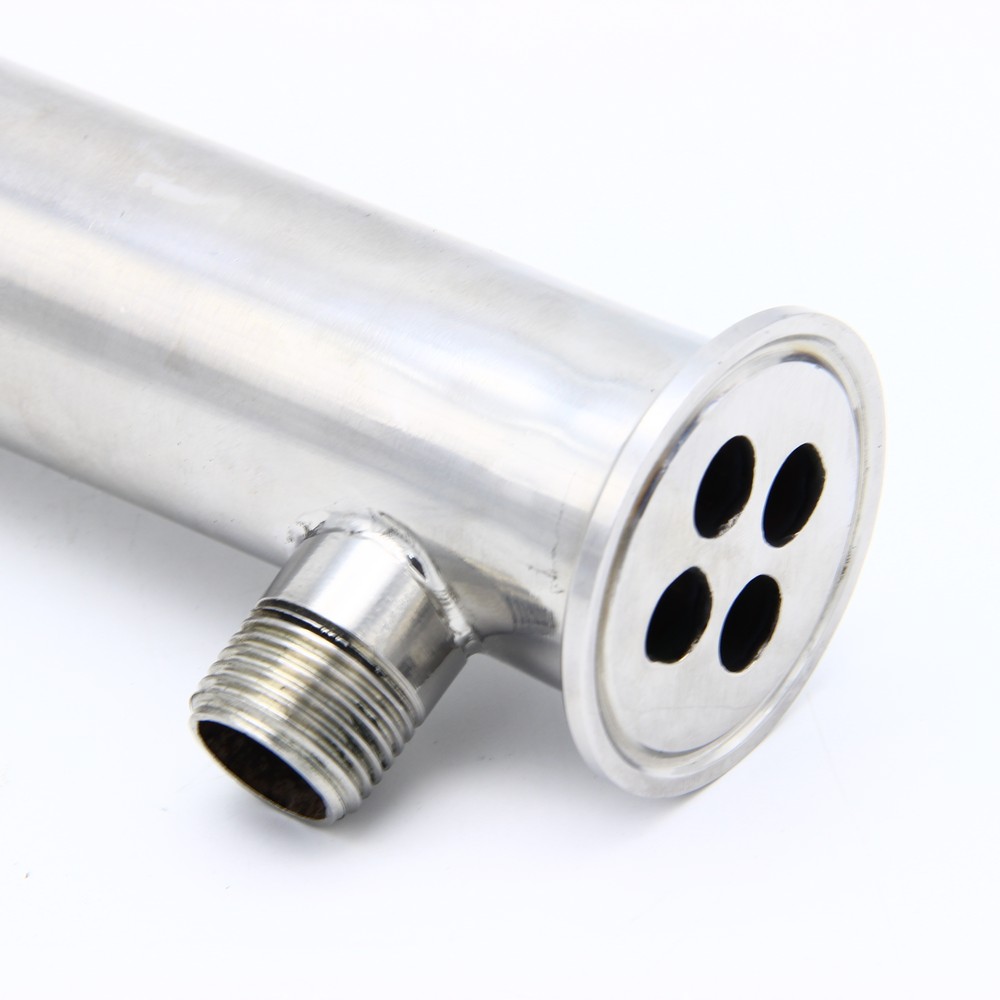 Дефлегматор 38-200 (4Х12) НР1/2 предназначен для очистки домашнего самогона от сивушных масел, он более эффективен, чем традиционный сухопарник, поэтому обычно используется с ректификационными и бражными колоннами, где критична степень очистки готового продукта. Принцип действия дефлегматора основан на разделении фракций, за счет охлаждения восходящих спиртовых паров. Все низкокипящие фракции, включающие сивушные масла и водяные пары при контакте с охлаждающим контуром дефлегматора переходят из пара в жидкость (флегму), и стекают в колонну или перегонный куб (в зависимости от конфигурации самогонного аппарата). Стекающая флегма контактирует с восходящими парами, также охлаждая их, поэтому спирт отправляется в узел отбора, а все ненужное – обратно в куб. Рекомендуем купить дефлегматор 38-200 (4Х12) НР1/2 для своего самогонного аппарата, чтобы повысить качество авторского самогона, без дополнительных мероприятий по фильтрации, углеванию и манипуляций с белком и марганцовкой. Дефлегматор изготовлен из нержавеюще