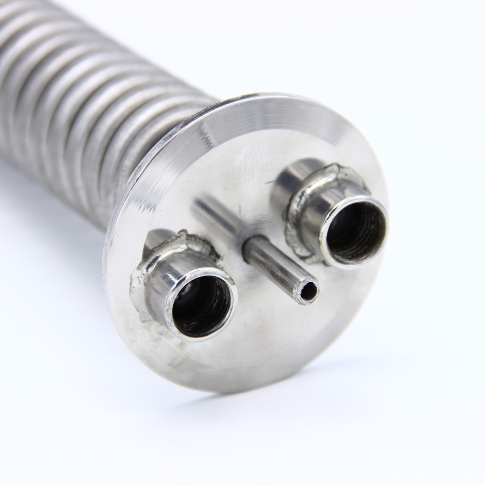 Холодильник Димрота 2" трубка 6 мм обладает значительно лучшими эксплуатационными характеристиками, по сравнению с традиционными прямоточными холодильниками. Это обусловлено большей площадью контура с охлаждающей жидкостью и более эффективным теплообменом. Капли спирта и флегмы задерживаются на витках спирали, подогреваются восходящим паром, поэтому происходит повторная испаряемость и дополнительная очистка. Вода движется по трубке 6 мм, согнутой в форме спирали, при этом происходит не только охлаждение паров и их конденсация, но и дополнительный нагрев стекающей вниз флегмы, что ускоряет процесс разделения фракций. Рекомендуем купить холодильник Димрота 2" трубка 6 мм для получения прозрачного и очищенного от примесей домашнего самогона с минимальным расходом воды из системы водоснабжения. Устройство изготовлено из нержавеющей стали, не подвержено коррозии, может устанавливаться в любую царгу 2 дюйма с кламповыми зажимами. Для защиты от перепадов давления внутри царги предусмотрен отвод в атмосферу.