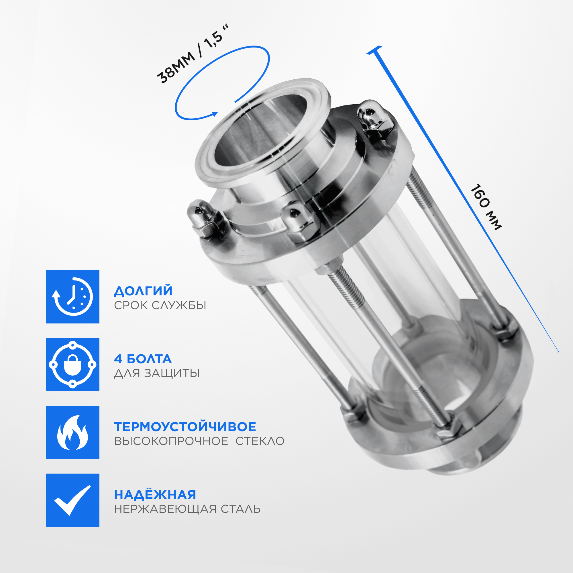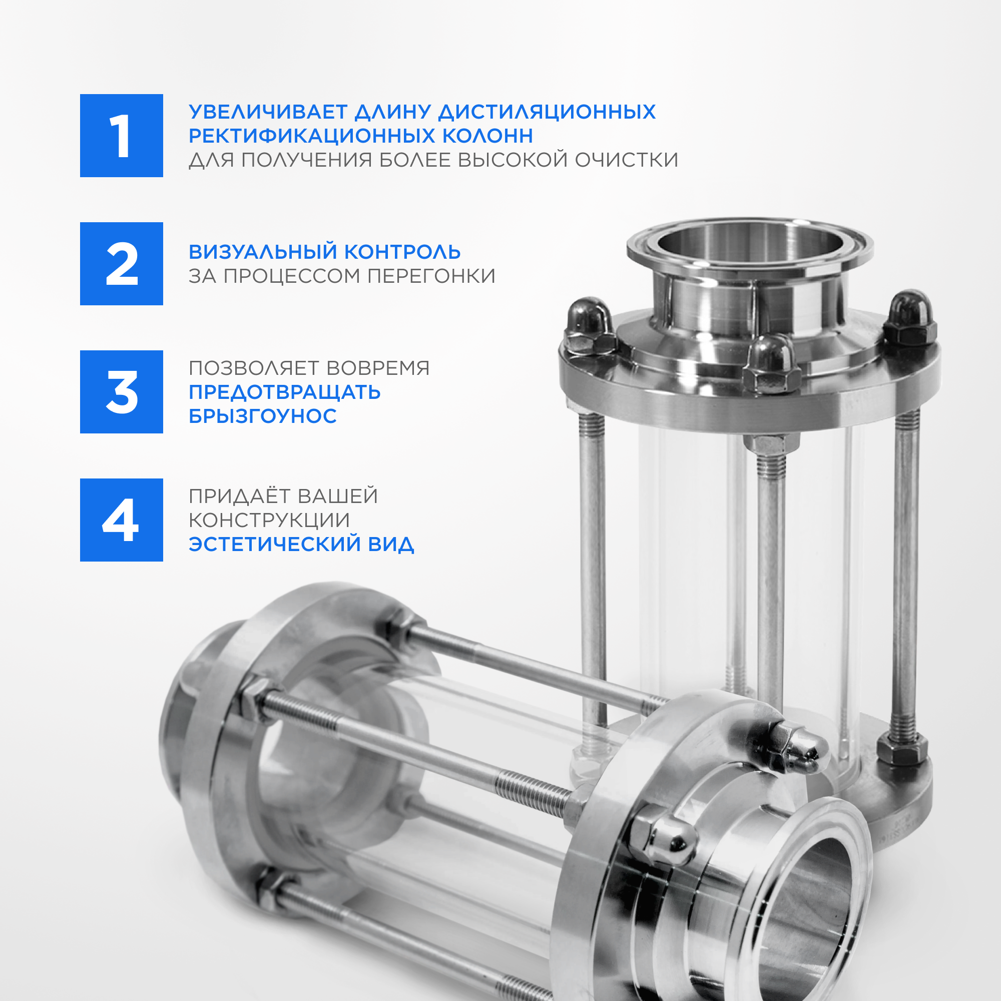 Диоптр 38 мм позволяет визуально контролировать все процессы, происходящие в процессе ректификации или дистилляции. Особенно полезен для тех, кто только делает первые шаги в приготовлении крепкого алкоголя в домашних условиях. Новичку достаточно сложно понять по показаниям контрольно-измерительной аппаратуры – идет ли отбор продукта с наилучшими параметрами, или колонна «захлебывается» от неоптимальных режимов нагрева аппарата и подачи воды в холодильник. Купить диоптр 38 мм стоит, чтобы не повторять болезненный опыт умельцев, создающих устройства подобного класса из электрических предохранителей или бутылочного стекла с защитным кожухом от пластиковой бутылки. В конструкции диоптра используется нержавеющая сталь и высокопрочное термоустойчивое стекло. Риск повреждения стекла минимален, защиту по периметру обеспечивают 4 болта, выполняя функцию защиты периметра. Вид стекающий флегмы обратно в перегонный куб не только завораживает, как горящий огонь, но и дает понять – процесс получения домашней водки идет точ