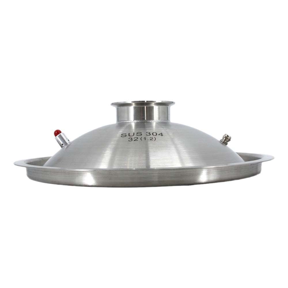 Купольная крышка 32 см выход 3" (1,2мм) – обязательный элемент современного самогонного аппарата, используемый для получения высококачественного дистиллята. Крышка может использоваться на перегонных кубах и кастрюлях, имеющих диаметр горловины 32 см. Важно то, что производитель куба или кастрюли не имеет значения. Производится она способом штамповки с вытягиванием из нержавейки толщиной 1,2 мм, поэтому может использоваться при высоких и низких температурах, не боится воздействия агрессивных сред, в том числе спирта. Купольная крышка 32 см имеет выход 3”, благодаря чему на нее можно устанавливать необходимые узлы и дополнительные элементы – диоптры, медные шлемы и конусы, узлы отбора, холодильники, имеющие кламповое соединение 3 дюйма. В крышке предусмотрен ниппель для установки термометра и дополнительный клапан, позволяющий экстренно сбросить давление. Для герметичного соединения крышки и перегонного куба необходимо дополнительно приобрести силиконовую прокладку и хомут-стяжку соответствующего размера.