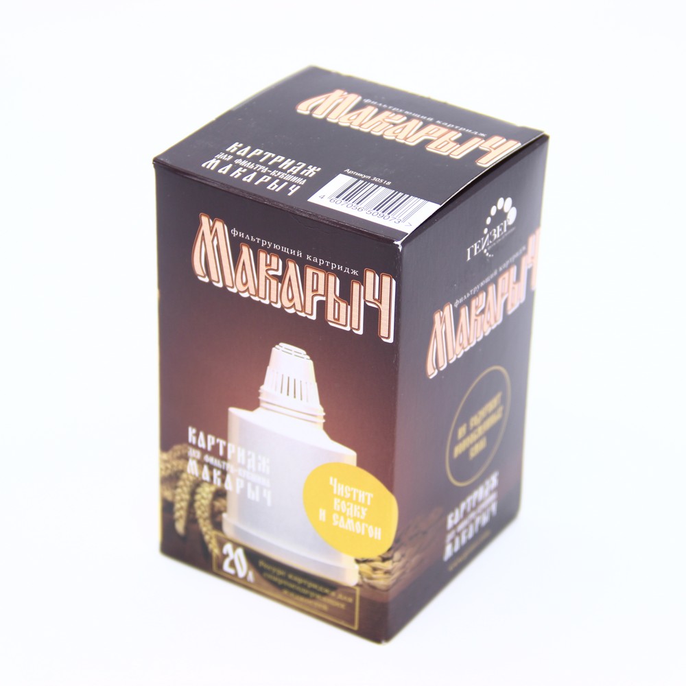 Сменный картридж для фильтра Кузьмич / Макарыч – это съемный фильтрующий блок, применяемый совместно с одноименным гейзером. Он пользуется особой популярностью у винокуров за счет способности быстро и качественно очищать домашние дистилляты и водку. Максимальный эффект фильтрации достигается за счет комплексного действия специального запатентованного каталитического компонента и активированного угля, прошедшего особую обработку серебром. Они полностью удаляют из спиртосодержащих жидкостей сивуху и другие вредные примеси, придавая им более мягкий вкус и приятный запах. Один сменный картридж для фильтра Кузьмич / Макарыч способен очистить до 2-х ведер дистиллята или 300 л воды. Если вы хотите пить действительно качественный алкоголь и обеспечить семью кристально чистой водой – гейзер Кузьмич / Макарыч обязательно должен быть в вашем доме!