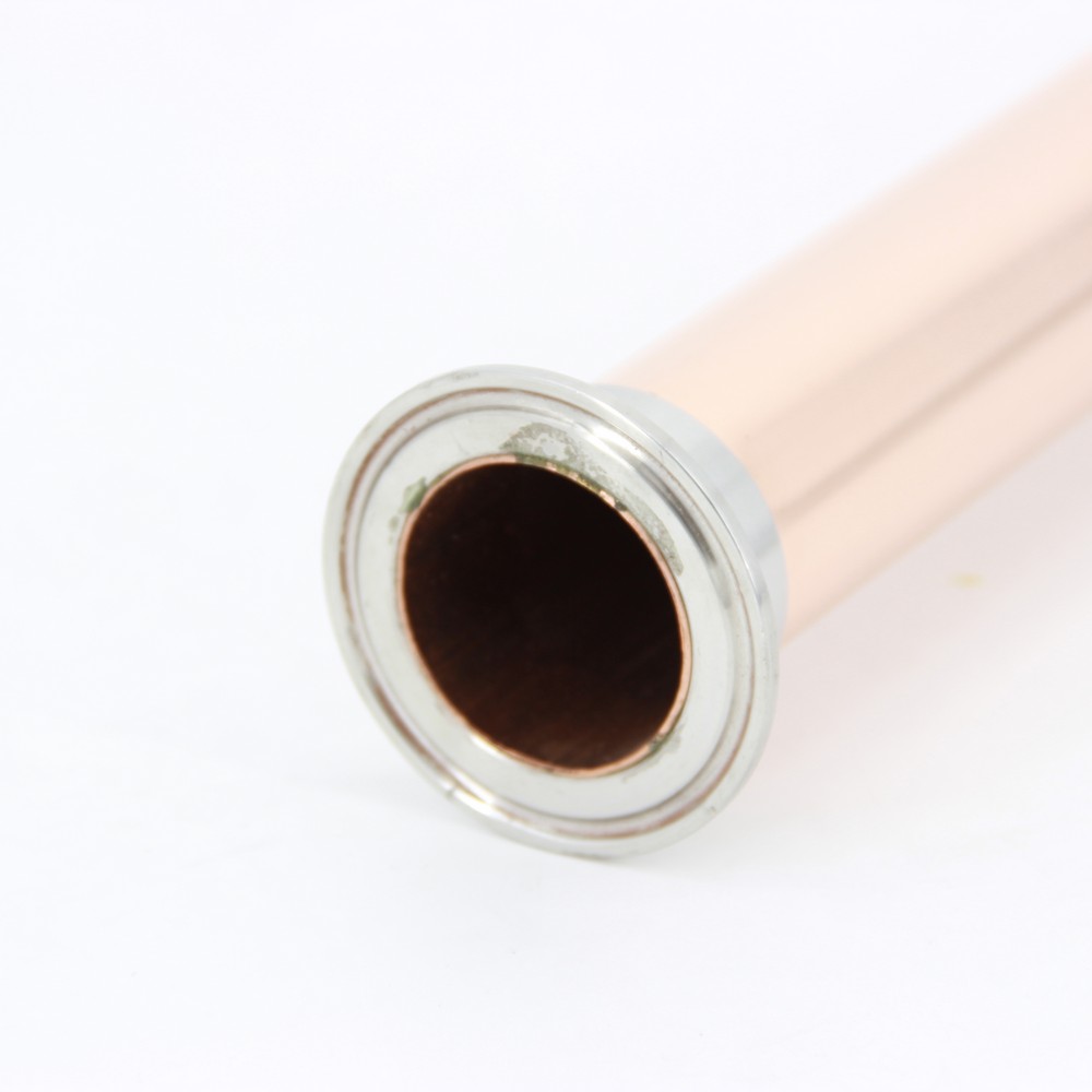 Медная царга с диаметром 51 и высотой 500 мм имеет два приваренных клампа из пищевой нержавеющей стали. Толщина идеально отшлифованной стенки составляет 1,2 мм. Насадка используется в модернизации конструкции самогонных аппаратов, придающей им сходство с промышленными, для приготовления 96% ректификата высокой степени очистки и отличного качества. Совместно с проволочной сеткой РПН или СПН помогает улучшить тепломассообменные процессы, нейтрализовать соединения серы и другие вредные примеси, избавиться от неприятных запахов и вкуса. Несложное приспособление поддерживает эффективное разделение паров дистиллята на фракции. Подключение медной царги 51-500 мм возможно ко всем типам оборудования, имеющим двухдюймовый кламповый выход.