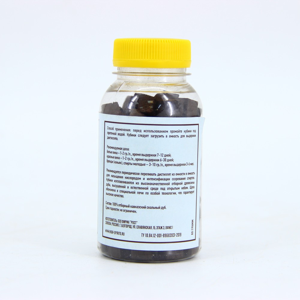Кубики из кавказского скального дуба среднего обжига с фасовкой по 80 г во флаконе производятся для облагораживания дистиллятов в целях получения полноценного виски и бренди. Заготовкой для сырья служат растения не моложе 80-100 лет, потому что именно в этом возрасте они накапливают нужное количество веществ, образующих аромат и смягчающих вкус спиртов. Произрастают деревья в экологически чистых и живописных местах с благоприятным климатом. В лабораторных условиях разрабатываются оптимальные дозировки древесных чипсов, палочек, щепы, выделяющих необходимую часть танинов, смол, жиров для улучшения качества напитков. Так как превышение объема или излишняя продолжительность воздействия может их бесповоротно испортить. Подбор осуществляется опытным путем в зависимости от ваших предпочтений: для белых и красных вин – от 0,5 до 2 г/л, для коньяков – от 2 до 8 г/л. Кубики 80 г «Скальный дуб Кавказ» со средним обжигом рекомендуется перед употреблением промыть под проточной водой для удаления пыли и отколовшихся мелки