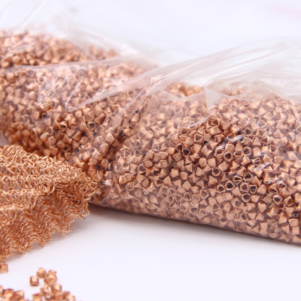 Чем больше площадь контакта между паром и флегмой, тем быстрее идет перегонка, для увеличения площади контакта используются насадки в колонну. Спирально-призматические насадки пользуются заслуженной популярностью у опытных самогонщиков, поскольку обеспечивают максимальную площадь контакта спирта и флегмы, при этом не препятствуют свободному прохождению пара в колонне. Набор СПН 1,5" 500мм (3х3х0,2 из меди) позволяет не резать медную проволоку и не навивать элементы насадки собственными руками, вы получаете уже готовый к установке в аппарат комплект. Медные насадки эффективно связывают соединения серы, придающие готовому напитку неприятный запах, поэтому они работают эффективнее аналогичных конструкций из нержавеющей стали. Поскольку сера осаждается непосредственно на поверхности меди, через несколько перегонок встает вопрос об очистке насадок, что часто отпугивает начинающих самогонщиков. Рекомендуем купить набор СПН 1,5" 500мм (3х3х0,2 из меди) для производства самогона высшего качества на сахарном сырье, на