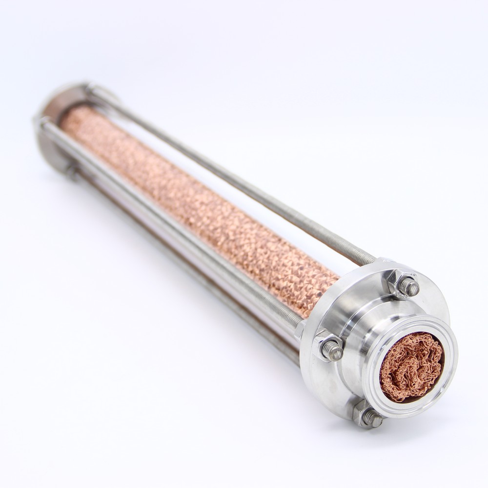 Набор Стеклянная царга 38 + СПН (3х3х0,2 из меди) предназначен для производства не только химически чистого, но и обладающего отменным вкусом спирта-ректификата. Сама царга не представляет собой революции в оборудовании для ректификации, спирально-призматические насадки также известны многим самогонщикам, как решение, обеспечивающее максимальную производительность и эффективность удаления сивушных масел из готового продукта. Но сочетание прозрачного стекла для визуального контроля процесса ректификации, качественные СПН, отбор медью всех соединений серы в процессе перегонки обеспечивают наилучшее из возможных качество готового самогона. Рекомендуем купить набор Стеклянная царга 38 + СПН (3х3х0,2 из меди) для организации производства чистейшего спирта-ректификата в домашних условиях. Приготовленная из него водка будет превосходить по вкусовым характеристикам большинство продукции в магазинах. Медные колонны не зря сотнями лет используются в промышленном производстве алкоголя – использование этого металла облаг
