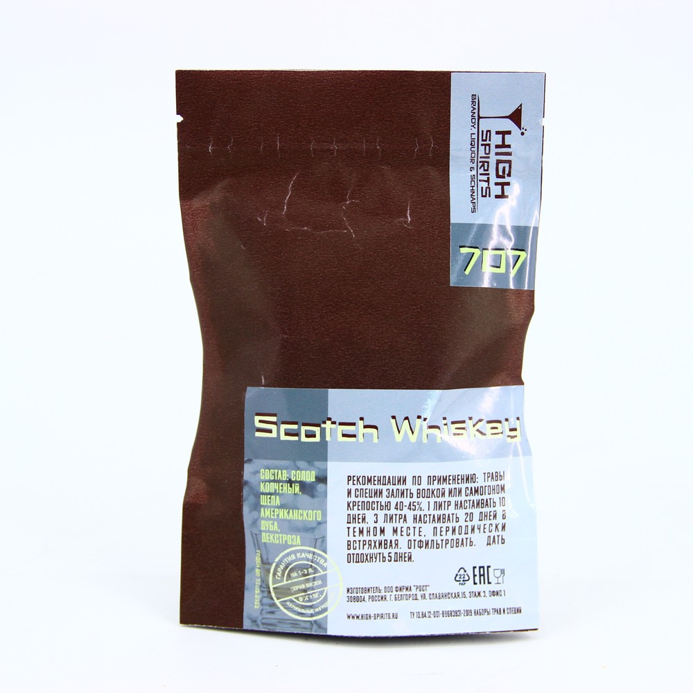 Копченый солод, щепа американского дуба, декстроза – вот и все, что входит в состав набора трав и специй 80 г для национального шотландского напитка «Scotch Whiskey» домашнего приготовления. Ну да, название географически закреплено на законодательном уровне. Но мы ведь будем готовить не для продажи, а для себя любимых. Поэтому, нарушаем эти странные запреты и беремся за дело. Для рецепта потребуется 1-3 литра водки или самогона. На первый раз для пробы начните с малого объема. Набор трав и специй «Scotch Whiskey» 80 г содержит только натуральные ингредиенты, придающие крепкому алкоголю благородные нотки, ярко выраженный солодовый аромат. Подробная инструкция написана на лицевой стороне упаковки. При желании дозировки можно корректировать по собственному вкусу.