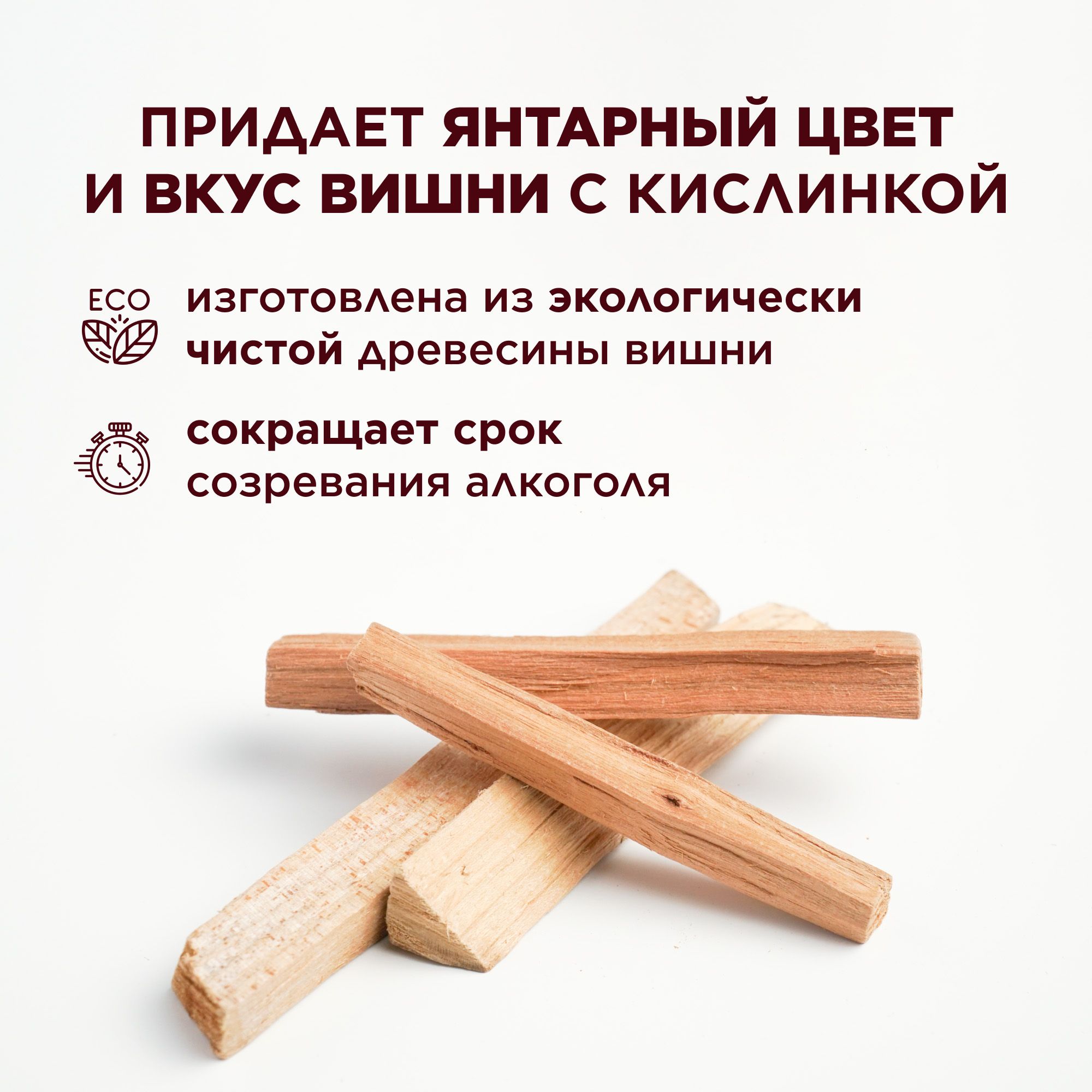 Палочки из дерева вишни весом 100 г в упаковке применяются для настаивания красных и белых вин, виски, бренди. Очень удобная и экономичная замена бочкам из любых пород деревьев, поскольку емкости имеют немалую цену, требуют больших площадей для размещения, длительной выдержки и определенных условий хранения. А вишневые заготовки буквально за 14 дней добавят в классические дистилляты домашнего приготовления нотки легкой горчинки, восхитительный аромат и теплые красно-коричневые тона. Палочки вишни изготовлены из отборной древесины, срок годности не ограничен. Перед использованием рекомендуется промыть, чтобы удалить пыль, образовавшуюся при обработке.
