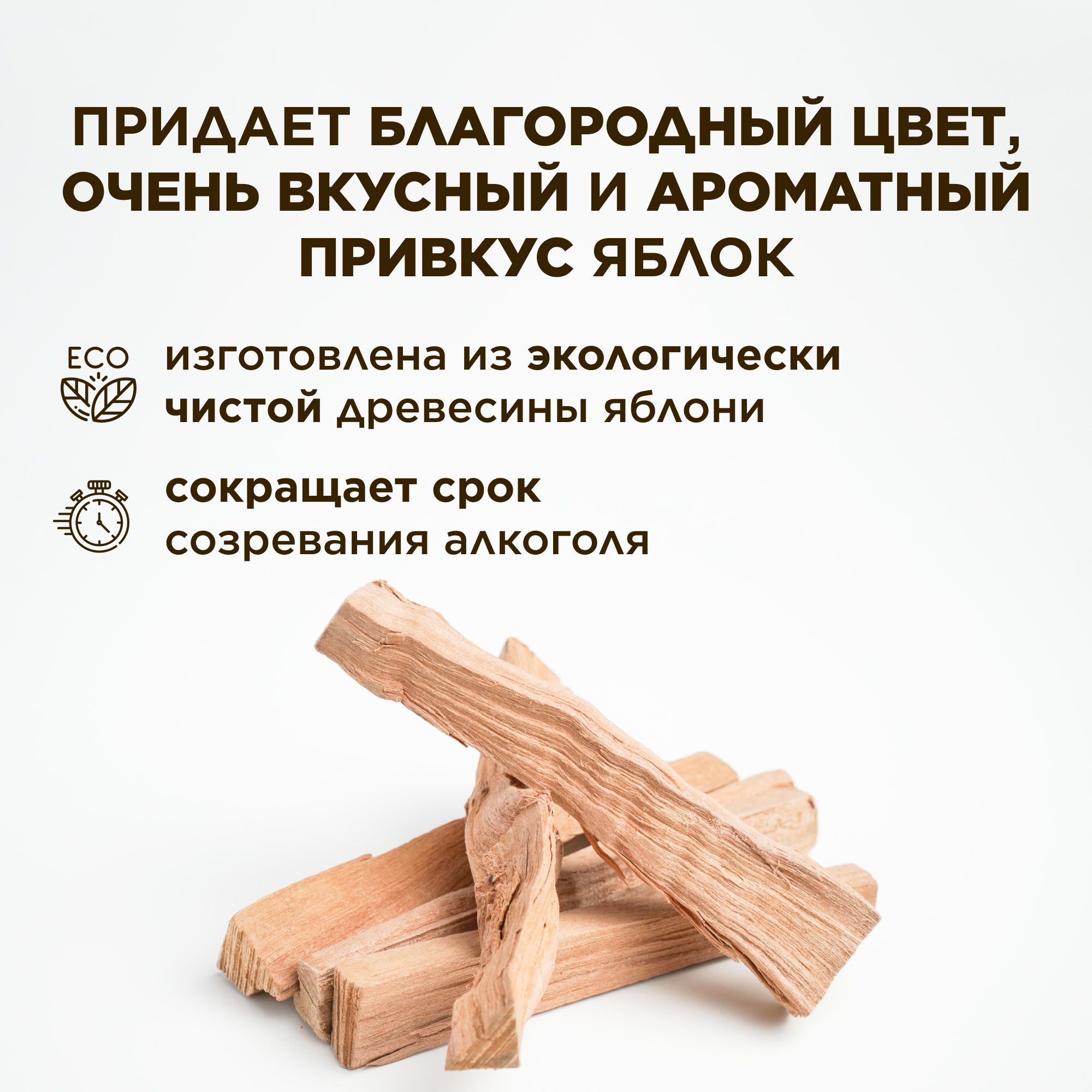 Палочки яблони 100 г часто входят в состав фруктово-древесных наборов для настаивания домашнего алкоголя. Но и самостоятельные яблоневые брусочки применяют при изготовлении: - Легких фруктовых и ягодных вин (Сангрия, Мерло, Каберне), - Домашнего кальвадоса, - Фруктовых водок и настоек. Палочки яблони 100 г полностью безопасны, не требуют дополнительной подготовки. Нужно лишь ошпарить их или несколько минут подержать в кипятке, чтобы поры древесины раскрылись, выпуская аромат. Насыщенные кисло-сладкие нотки яблоневого августовского сада отлично оттеняют вкус напитков в домашнем погребке.