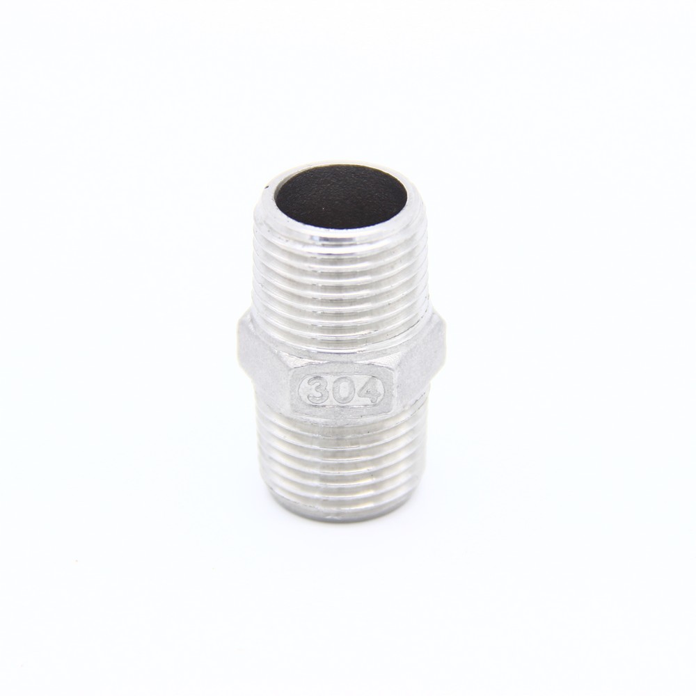 Переходник НР1/2 - НР1/2 с одинаковым диаметром с обеих сторон изготовлен из специальной стали AISI 304, применяемой в пищевой промышленности. Толщина стенки фитинга гарантирует отличную прочность, внешняя резьба – надежное сцепление и герметичность. Сплав устойчив к высоким механическим и термическим нагрузкам, образованию грибковых налетов. Его состав, конструктивные особенности и технология изготовления полностью соответствуют санитарным требованиям и государственным стандартам. Используется для подключения приборов к системам водоснабжения, наращивания перегонных трубопроводов в виноделии и самогоноварении. Переходник имеет в середине участок шестигранной формы под ключ, облегчающий процесс монтажа.