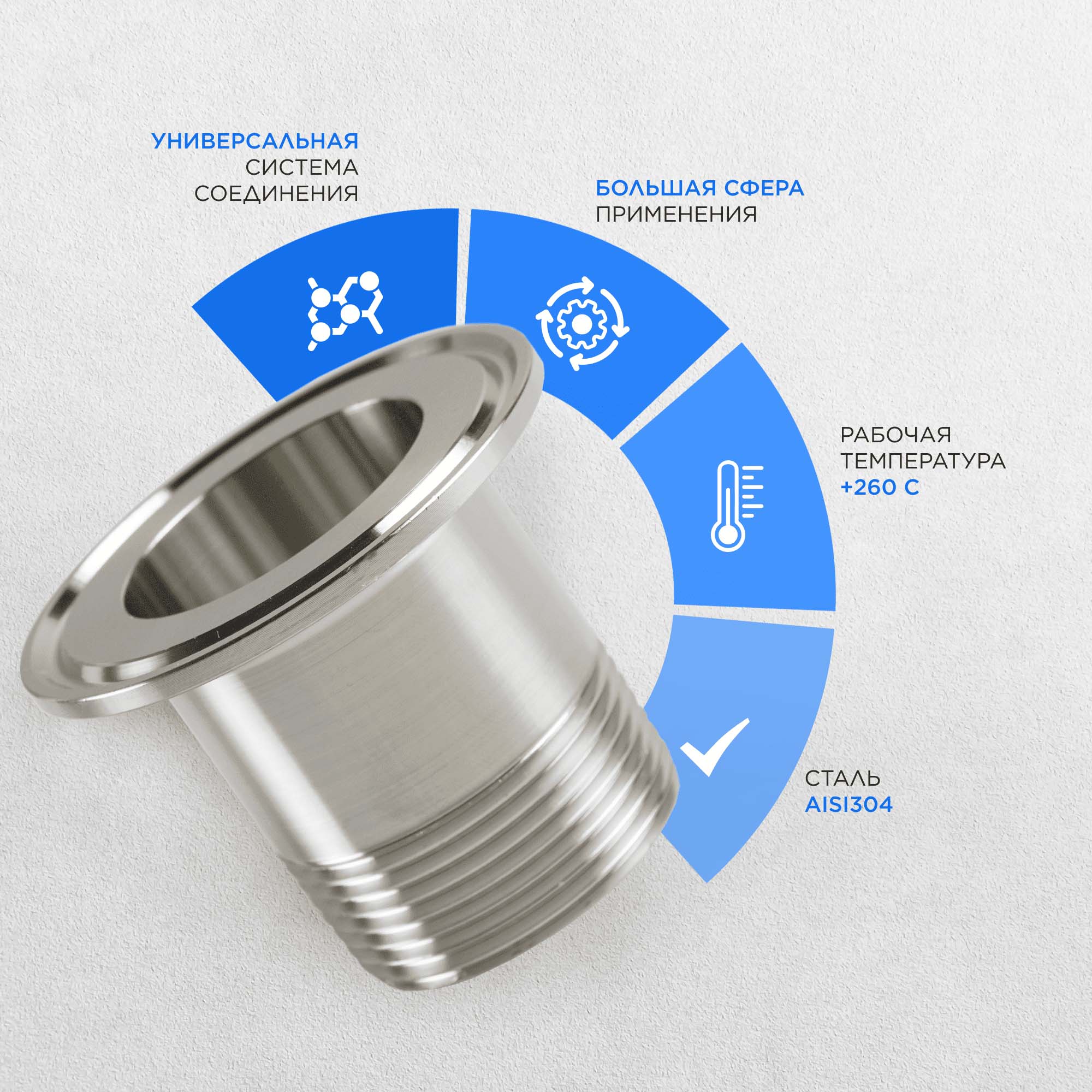 Кламп 2" резьба 1 1/2" наруж. (DN40) позволяет быстро и надежно соединить части самогонного аппарата с различными типами креплений. С помощью него можно подружить оборудование от разных производителей, разного типа, произведенное в разные периоды времени. Многие мастера домашнего самогоноварения начинают знакомство с оборудованием с бюджетных моделей простейшей конструкции. После какого-то периода времени они понимают, что для производства качественного алкоголя необходимо качественное оборудование. Поэтому начинаются поиски дефлегматоров, царг, колонн для модернизации. При этом есть возможность использовать часть оборудование от старого аппарата, например, перегонный куб или холодильник. Купить кламп 2" резьба 1 1/2" наруж. (DN40) выгодно тем, кто не хочет тратить деньги на приобретение полного комплекта оборудования, если можно использовать имеющиеся в наличии блоки. Изделие выполнено из пищевой нержавеющей стали, легко моется, может храниться в любых условиях, не подвержено коррозии, отличается долгим срок