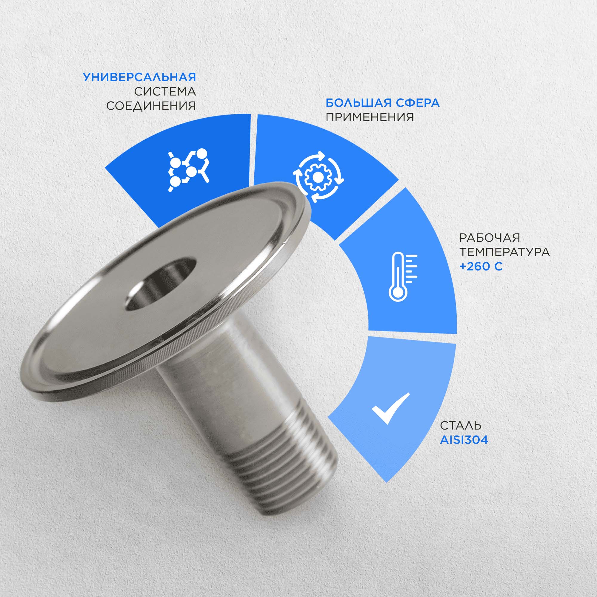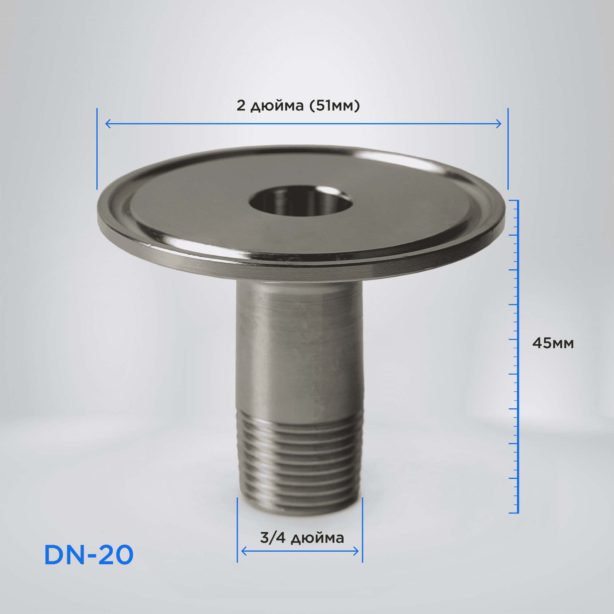 Кламп 2" с наружной резьбой 3/4" (DN20) применяется в домашнем самогоноварении в качестве переходника для удлинителей дистилляторов, насадок на перегонный куб, необходимых для очистки и крепления спиртных напитков. Такое соединение считается наиболее практичным, чем чисто резьбовое. Облегчает сборку и разборку компонентов оборудования. Изготавливается из нержавеющей стали, толщина проката – 1,2 мм, диаметр присоединительной поверхности – 51 мм. Не подвержен коррозии при взаимодействии с любого типа дистиллятами. Выдерживает максимально высокие температуры до 200°С. С помощью клампа 2" с наружной резьбой 3/4" (номинальный параметр DN20) можно простой водопроводный кран переоборудовать в кламповый.