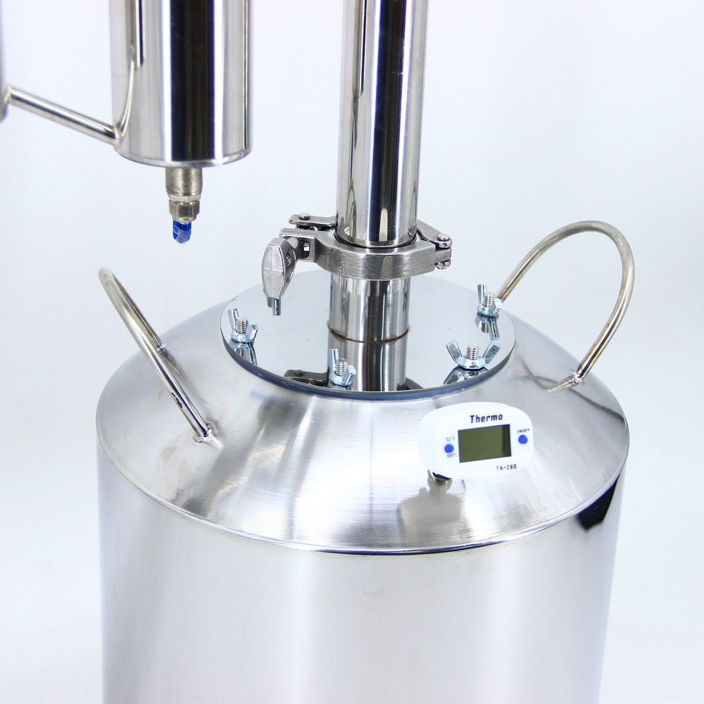 Дистиллятор "Северный поток" 15 л – это усовершенствованная версия всем известного самогонного аппарата «Северный», которую при необходимости можно модифицировать в ректификационную колонну. Для эффективной конденсации паров спирта предусмотрен мощный холодильник, позволяющий ускорить процесс перегонки. Чтобы увеличить степень очистки перегоняемой браги, производитель оснастил агрегат небольшой царгой. А два разборных сухопарника по максимуму отсекают вредные примеси, придавая алкоголю желаемую органолептику. Дистиллятор дополнен цифровым термометром, помогающим держать под контролем работу агрегата и при необходимости регулировать степень нагрева. А наличие широкой горловины на перегонном кубе не только обеспечивает удобство при уходе, но и позволяет использовать бак в качестве емкости для брожения. Дистиллятор "Северный поток" 15 л подходит для использования с плитами любого типа. Его можно назвать «универсальным солдатом», готовым идти в бой со спиртосодержащими жидкостями в любое время дня и ночи!