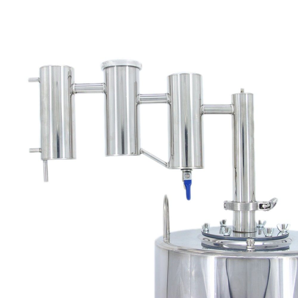 Самогонный аппарат "Северный поток" 30 л – самогонный аппарат с хорошей вместительностью, который обеспечит качественную и ускоренную перегонку браги. Это достигается за счет усовершенствованной конструкции – двух сухопарников и конденсатора с впечатляющей охлаждающей способностью. Используя данный аппарат, вы получите более крепкий и чистый дистиллят без сивушных масел и прочих примесей. А если захотите придать самогону благородный аромат – просто засыпьте во второй сухопарник душистые ягоды или другие ингредиенты. Благодаря кламповым соединениям, хомутам из нержавейки и силиконовым прокладкам получается максимально герметичная система, которая не даст сбой во время работы. Самогонный аппарат "Северный поток" 30 л идеально подойдет самогонщикам, которые любят экспериментировать с конструкцией аппарата – наращивать царгу, добавлять узел отбора, устанавливать диоптр и т. д.