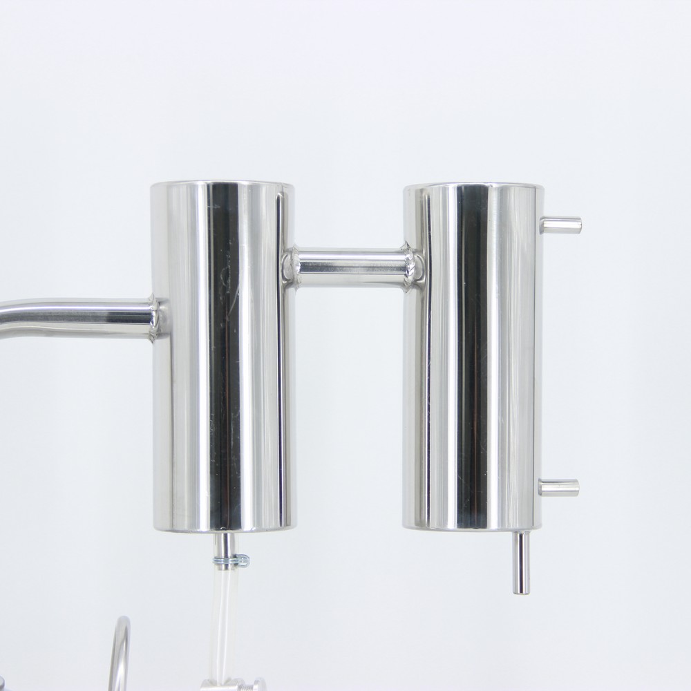 Самогонный аппарат Якутка 23 л – простой, но очень эффективный дистиллятор, который не займет много места на кухне и быстро окупит свою цену! Это традиционная проточная модель, требующая подключения к водопроводу при помощи шланга и дивертора (поставляются в комплекте). К основному преимуществу дистиллятора можно отнести наличие сухопарника, обеспечивающего качественный сбор сивушных масел, ухудшающих органолептику алкоголя. Также аппарат оснащен зажимом Гофмана для регулировки подачи воды, что позволяет качественно охлаждать пары спирта во время ректификационного процесса. Благодаря наличию встроенного температурного датчика, моментально реагирующего на изменения показателей, вы сможете четко контролировать градусы и при необходимости увеличивать/уменьшать нагрев. Стальной агрегат станет долговечным помощником в приготовлении хорошего алкоголя без постороннего запаха. А поскольку конструкция состоит из небольшого набора элементов, то на ее сборку у вас уйдут считанные минуты! Самогонный аппарат Якутка 23 л п