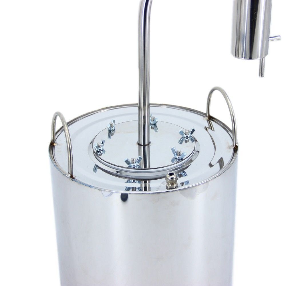 Самогонный аппарат Моргенштерн 13л — один из самых надежных в линейке аппаратов для домашнего самогоноварения. Сочетая в себе надежность автомата Калашникова и простоту валенка, этот самогонный аппарат способен с первого применения заставить влюбиться в себя и новичка, и профессионала. 1.      Бак из нержавеющей стали с широким горлышком прост в уходе и долговечен в работе; 2.      Ферромагнитный сплав на дне работает и с электрическими, и с газовыми, и с индукционными плитами; 3.      Классический сухопарник с водяным охлаждением качественно "отрабатывает" весь объем спиртовых паров; 4.      Идеально запаянные и зачищенные стыки всех деталей легко выдерживают высокое давление и великолепно смотрятся; 5.      Электронные термометры четко контролируют температуру в перегонном кубе, реагируя на малейшее изменение плотности браги; 6.      Металлические приваренные ручки удобны для захвата всей ладонью и не открутятся в самый неподходящий момент. Самогонный аппарат Моргенштерн 13л позволяет даже начинающим самого