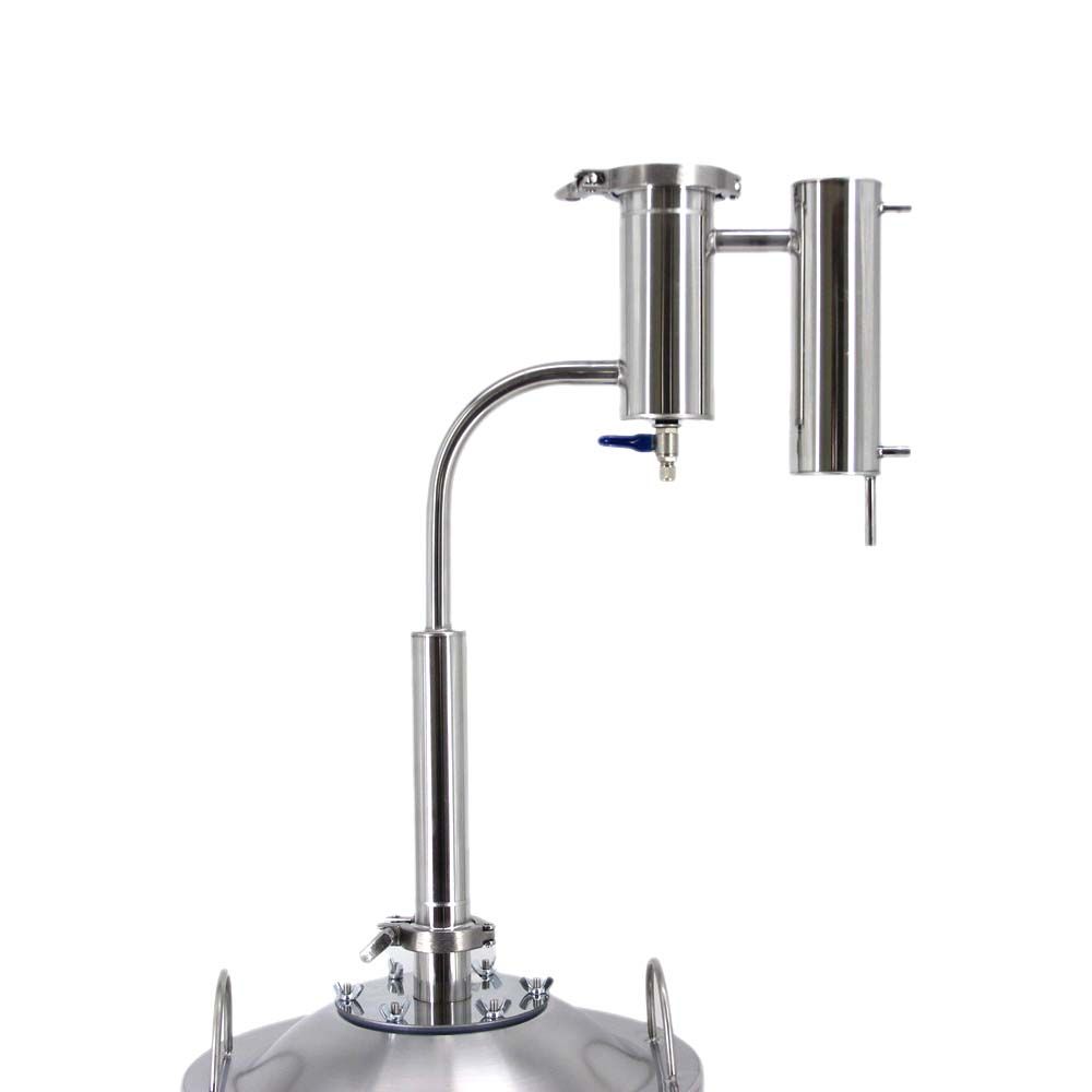 Дистиллятор Финка, 40 л – это улучшенная версия классического самогонного аппарата. Он может стать отличным помощником при приготовлении самогона и других крепких напитков с содержанием алкоголя до 70 градусов. Аппарат отличается простотой применения, поэтому хорошо подходит как для опытных, так и для начинающих самогонщиков. Среди основных особенностей дистиллятора можно отметить разборную конструкцию сухопарника. Это существенно упрощает его очистку от сивушных масел. Благодаря большому диаметру сухопарнику, можно использовать травы и другие добавки, что значительно расширяет возможности при приготовлении алкогольных напитков в домашних условиях. Кламповое соединение позволяет легко модернизировать дистиллятор. При необходимости можно установить царгу и другие приспособления. В результате можно получить чистый и качественный продукт. Дистиллятор Финка, 40 л изготовлен из нержавеющей стали. Он не вступает в реакцию с жидкостями, поэтому не влияет на вкус и аромат готового напитка.