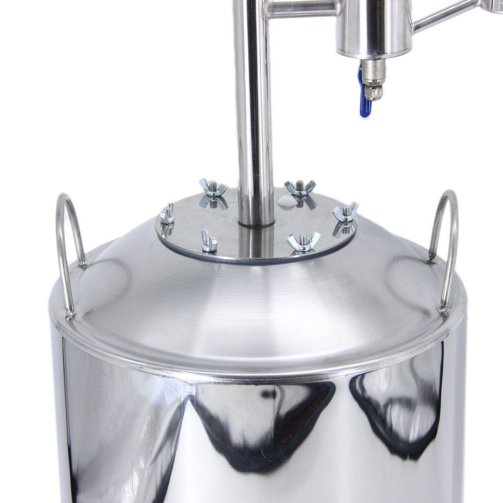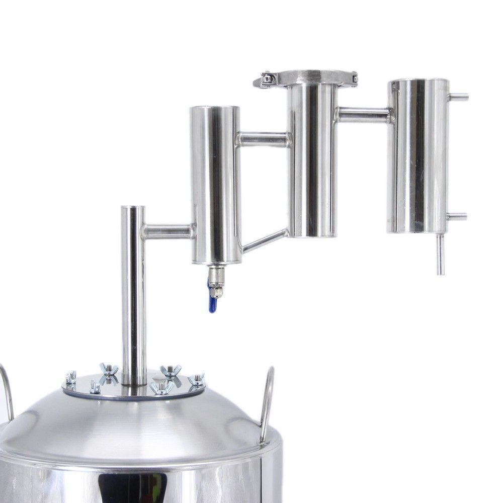 Самогонный аппарат Северный NEW 30 л проверенный временем и практическим опытом самогонный аппарат в обновленной комплектации. Производители внимательно изучили отзывы и обзоры покупателей и избавились от всех недоработок в конструкции. В результате появился дистиллятор с: - Намертво приваренными к баку ручками из металла, выдерживающими вес полностью залитого бачка. - Усиленное дно перегонного куба со специальным покрытием для индукционных плит. - Сливное отверстие у донышка с ввинчивающейся заглушкой, которую можно легко заменить на кран. - Плоская крышка, с надежными винтами, снабженными барашками, чтобы не искать ключи для сборки устройства. - Отдельный переходник для установки термометра. - Трехступенчатый узел отбора с сухопарником с краном для слива флегмы, второй - с кламповым диоптром, превращающийся в ректификационную колонну, и вертикальный холодильник с водяным контуром. Все элементы изготовлены заводским способом из нержавеющей толстостенной стали и прошли тщательную проверку. Поэтому Самогонный