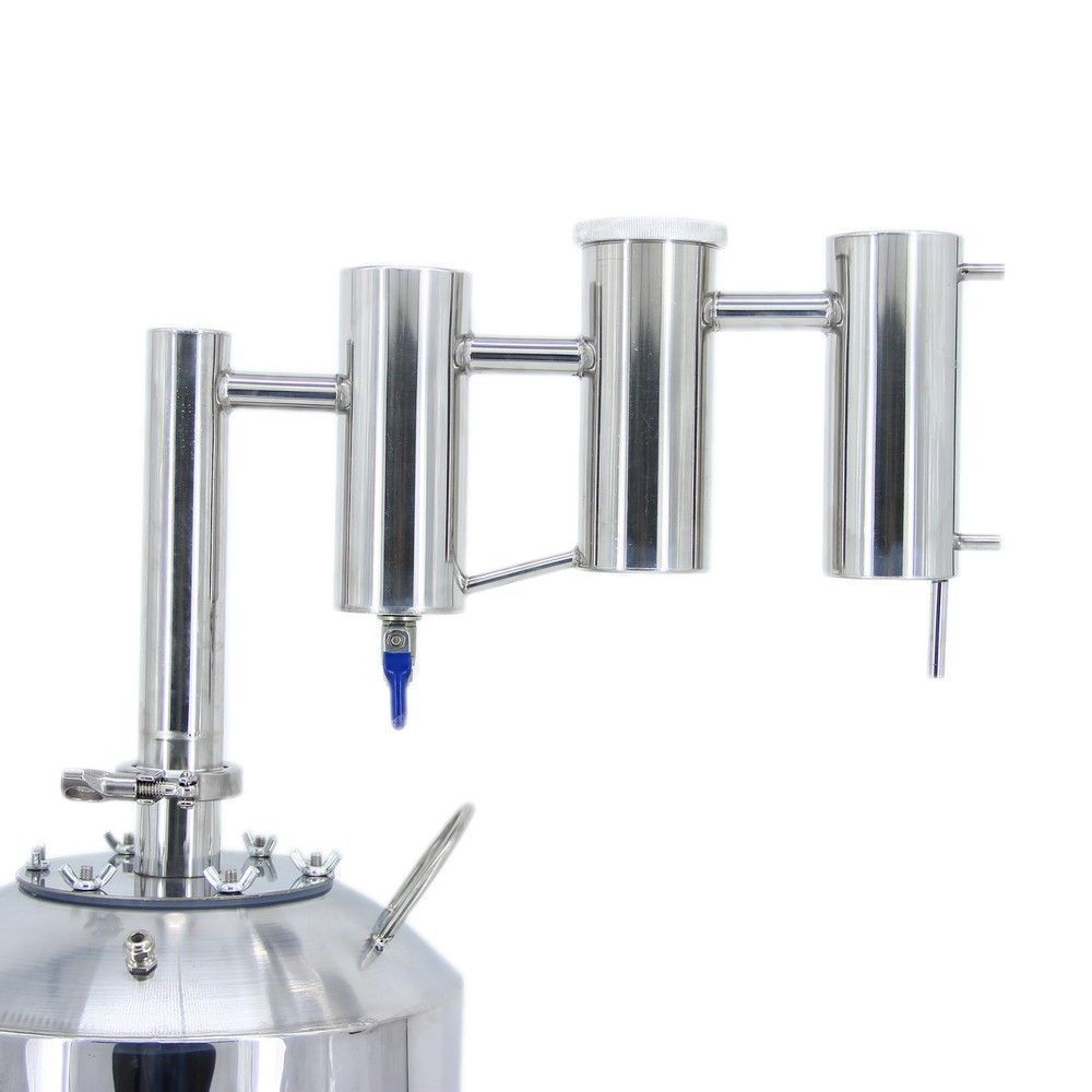Самогонный аппарат "Северный поток" 23 л – универсальный вариант для домашнего самогоноварения, который подходит для использования вместе с ТЭНом и на плите любого типа. Особенность и преимущество аппарата заключается в наличии клампа для соединения фланца с миниколонной. Благодаря этому вы легко можете превратить дистиллятор в ректификационную колонну. За счет увеличенного числа сухопарников перегоняемая брага на выходе получается более качественной – она лишена не только вредных примесей, но и выраженного самогонного запаха. А благодаря мощному охлаждающему элементу пары спирта эффективно конденсируются, что позволяет сократить время перегонки. При желании в сухопарник можно закладывать травы и другие компоненты для ароматизации дистиллята. Агрегат комплектуется высокоточным электронным термометром, позволяющим отслеживать температуру во время процесса перегонки. Дистиллятор "Северный поток" 23 л станет выгодной инвестицией, особенно если вы занимаетесь самогоноварением недавно!