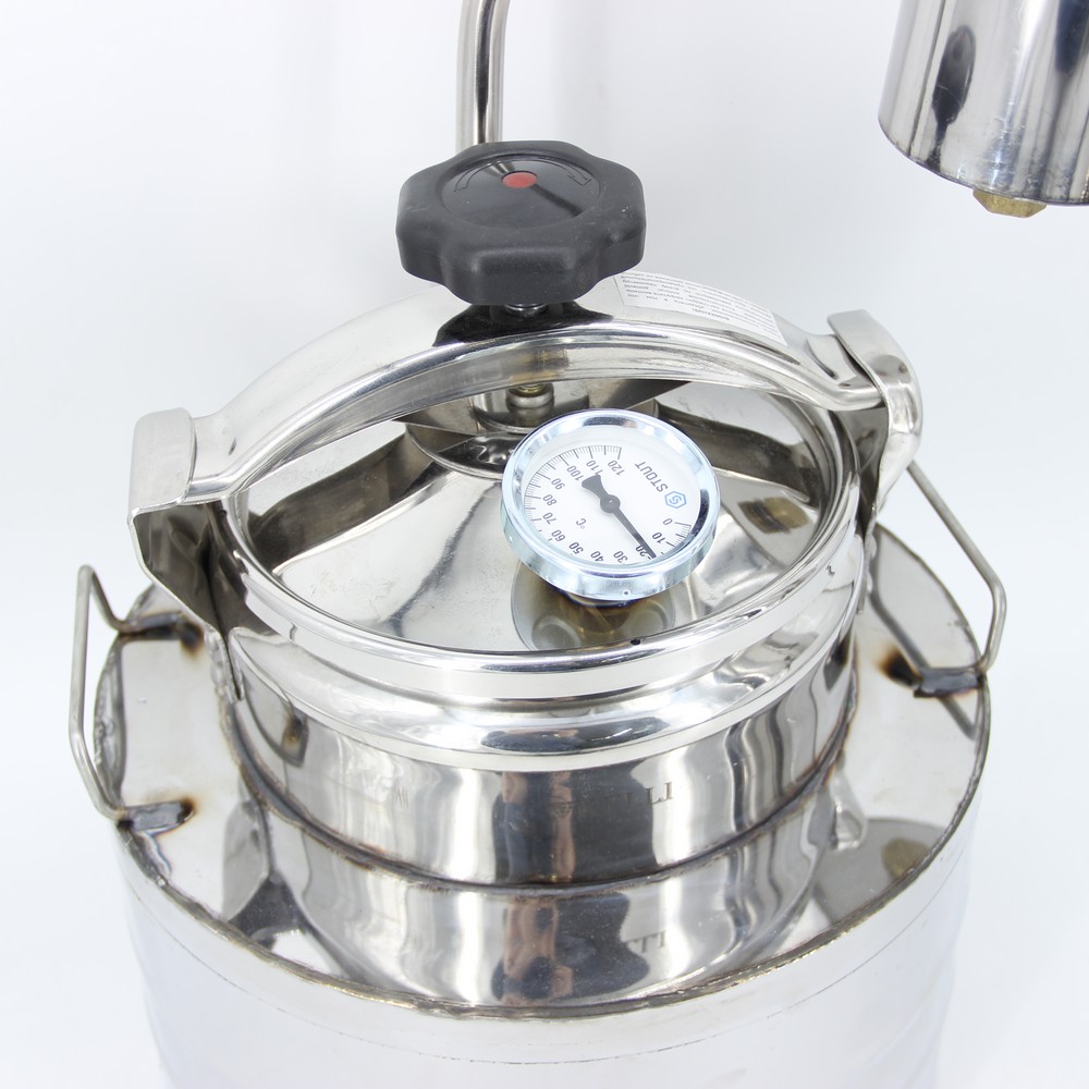 Дистиллятор СКОРОВАРКА ДС-15 оптимален для удовлетворения личных нужд в ароматном и прозрачном самогоне, за одну перегонку можно получить до 3 л готового напитка не уступающего по качеству водке из магазина, но отличающегося тонкой органолептикой. Основное преимущество самогонного аппарата – малый вес и компактные габариты, с ним можно легко работать в одиночку. Все элементы и узлы изготовлены из нержавеющей стали, поэтому дистиллятор прослужит многие годы и позволит в десятки раз снизить затраты на алкоголь. Идеальная чистота готового напитка достигается встроенным сухопарником, эффективно отсекающим сивушные масла, имеющие более низкую температуру кипения, чем спирт. Сливать вредные примеси из сухопарника можно без остановки дистилляции. Рекомендуем купить дистиллятор СКОРОВАРКА ДС-15, даже если у вас абсолютно нулевой опыт производства самогона на дому – аппарат надежен и дружелюбен к новичкам, встроенный в крышку перегонного куба градусник позволит точно контролировать технологию производства качественног