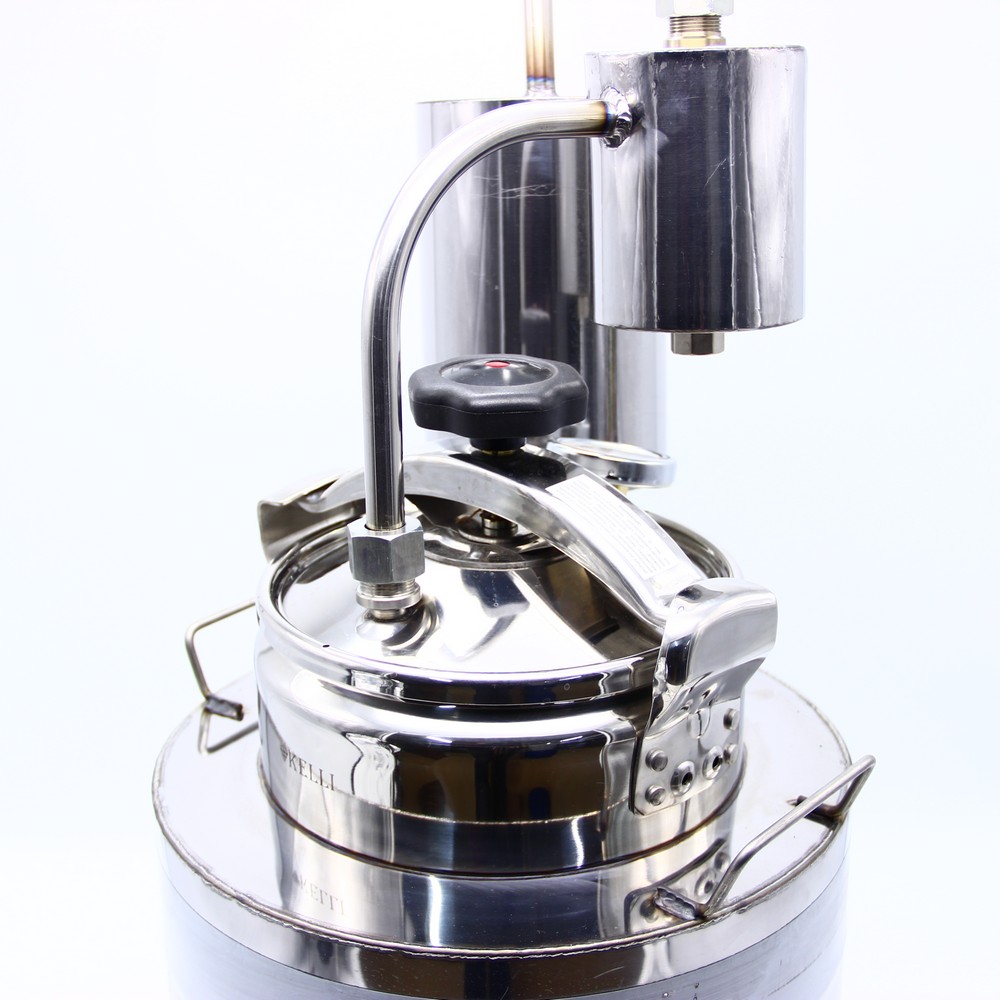 Дистиллятор СКОРОВАРКА ДАЧНЫЙ ДС-24 пользуется стабильным спросом, поскольку сочетает бюджетную стоимость и отличное качество получаемого самогона. Изготовлен из высоколегированной стали, поэтому будет верно служить владельцу десятилетиями, производя вкусный и ароматный авторский самогон. Традиционная конструкция аппарата позволяет производить коньяки, виски, кальвадосы и любые другие ароматные дистилляты со вкусом исходного сырья. Но ничто не мешает залить в перегонный куб сахарную брагу и получить традиционный самогон. Высокое качество очистки обеспечивает входящий в комплект сухопарник – в нем происходит расширение восходящих паров с последующим охлаждением и превращением сивушных масел в жидкость, стекающую на дно сухопарника. Вредные примеси можно сливать прямо в процессе перегонки с помощью удобного крана на дне сухопарника. Рекомендуем купить дистиллятор СКОРОВАРКА ДАЧНЫЙ ДС-24 для производства качественного самогона в любых условиях. Перегонный куб с дном толщиной 3 мм может работать как на газу, так