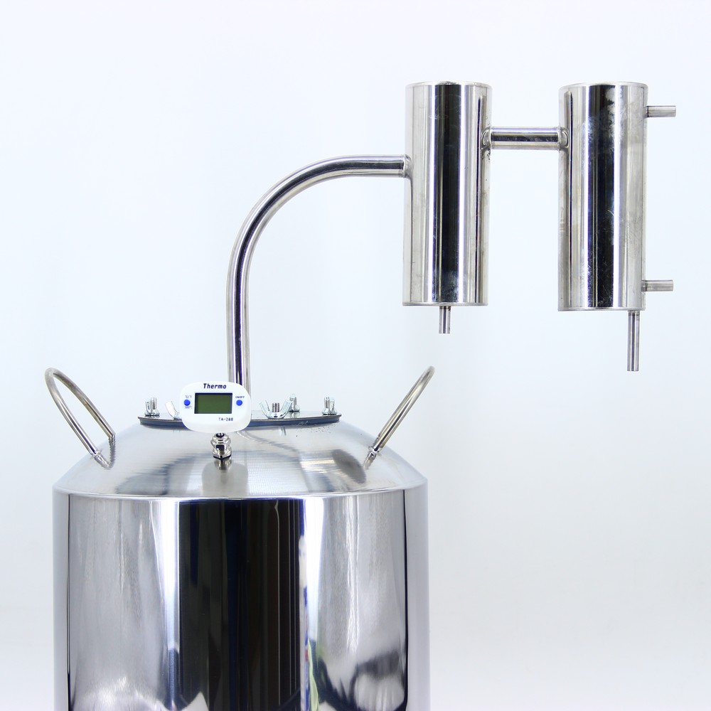Современное самогоноварение кардинально отличается от перегонки браги прошлых лет. Хотя бы таким дистиллятором, как самогонный аппарат Якутка 15 л. Он поможет забыть о громоздких конструкциях и трудоемком процессе. С ним перегонка браги превратится в одно удовольствие! Агрегат представляет собой компактный перегонный куб на 15 л с купольной крышкой, оснащенной высокоточным термометром для контроля температуры во время рабочего процесса. А для исключения появления специфического запаха во время перегонки предусмотрена уплотнительная прокладка между фланцем и горловиной. Сухопарник обеспечивает физическую очистку спиртовых паров, т. е. задерживает сивушные масла, которые портят вкусовые качества напитка и его цвет. Также аппарат укомплектован очень полезной и удобной вещицей – зажимом Гофмана. При помощи этого элемента регулируются потоки воды, что позволяет организовать правильное охлаждение конденсатора и улучшить качество алкоголя на выходе. Самогонный аппарат Якутка 15 л – это недорогой проточный дистиллято