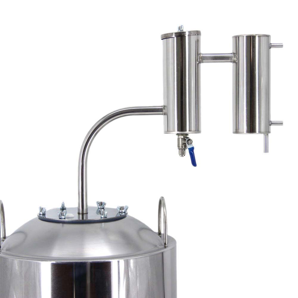 Дистиллятор Якутка Люкс 23 л – это улучшенная версия самогонного аппарата. Компактный агрегат способен заменить громоздкие конструкции, при этом обеспечит высокое качество готового продукта. В комплект входит сухопарник, который хорошо задерживает сивушные масла, поэтому на выходе удается получить чистые алкогольные напитки. Самогонный аппарат комплектуется купольной крышкой, которая оснащена высокоточным термометром. Он позволяет контролировать процесс перегонки. Для изготовления дистиллятора использована пищевая нержавеющая сталь. Важное ее преимущество заключается в том, что она не вступает в реакцию с жидкостями, а поэтому не оказывает негативного влияния на аромат и вкус готового продукта. Дистиллятор Якутка Люкс 23 л отлично подходит для опытных и начинающих самогонщиков, так как отличается простотой применения.
