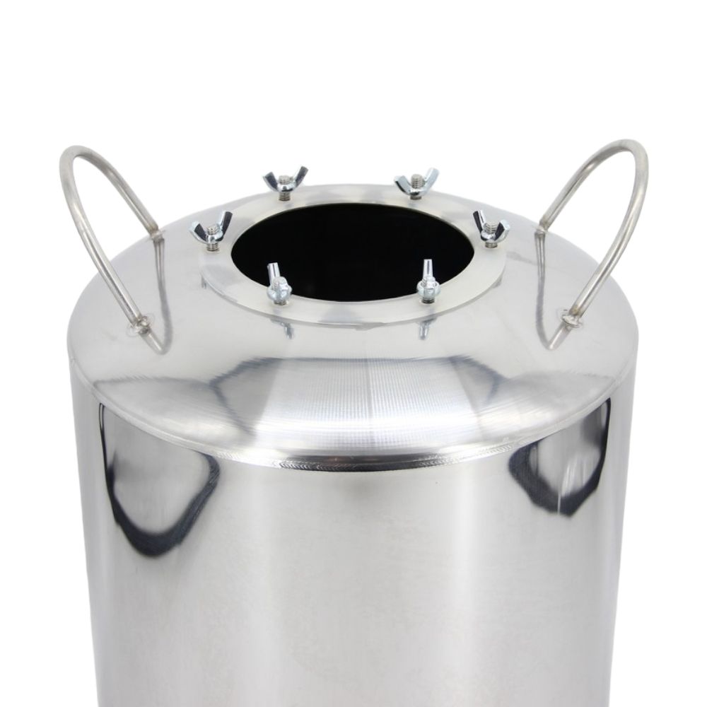Перегонный куб купольный 23 л. – один из основных компонентов современного самогонного аппарата, который может использоваться для дистилляции практически любых крепких спиртных напитков. Куб выполнен по традиционной технологии с купольной верхней частью, благодаря которой дистиллят не будет скапливаться, а будет попадать в следующий узел. Горловина куба имеет стандартный диаметр – 110 мм, и дополнительно оснащена шестью винтами с гайками-барашками для крепления дистилляционных узлов (при установке дефлегматора или фланца обязательно необходимо уложить прокладку соответствующего размера). Для удобства слива отработанного сырья в нижней части куба имеется патрубок, который по умолчанию закрыт пробкой, но при необходимости на него можно установить кран. Перегонный куб купольный 23 л. изготовлен из нержавеющей стали AISI 304, которая не вступает в реакцию с суслом и не боится воздействия агрессивных сред. Для удобства переноски куб оснащен двумя удобными ручками на верхней части. Полный объем куба – 23 литра, но