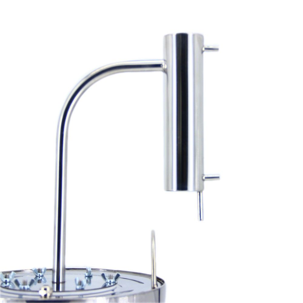 Самогонный аппарат Моргенштерн 13л — один из самых надежных в линейке аппаратов для домашнего самогоноварения. Сочетая в себе надежность автомата Калашникова и простоту валенка, этот самогонный аппарат способен с первого применения заставить влюбиться в себя и новичка, и профессионала. 1. Бак из нержавеющей стали с широким горлышком прост в уходе и долговечен в работе; 2. Ферромагнитный сплав на дне работает и с электрическими, и с газовыми, и с индукционными плитами; 3. Классический сухопарник с водяным охлаждением качественно "отрабатывает" весь объем спиртовых паров; 4. Идеально запаянные и зачищенные стыки всех деталей легко выдерживают высокое давление и великолепно смотрятся; 5. Электронные термометры четко контролируют температуру в перегонном кубе, реагируя на малейшее изменение плотности браги; 6. Металлические приваренные ручки удобны для захвата всей ладонью и не открутятся в самый неподходящий момент. Самогонный аппарат Моргенштерн 13л позволяет даже начинающим самого