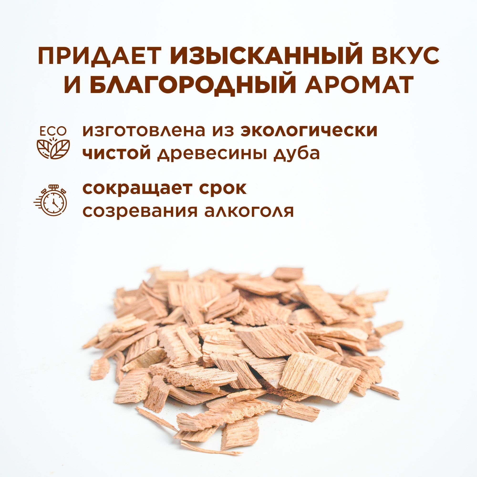 Щепа дубовая для самогона 500г (слабый обжиг) - большая упаковка сырья для облагораживания домашних дистиллятов. Используется там, где нет возможности настаивать виски, коньяк или бренди в дубовых бочонках, а использовать химические вкусовые добавки не хочется. Зрелая древесина дуба, собранная лишь со здоровых, взрослых деревьев, тщательно измельчается и подвергается воздействию торфяного дыма. Если залить щепу домашним дистиллятом, то постепенно получается напиток, по вкусу и цвету схожий с марочным. Щепа дубовая для самогона 500г (слабый обжиг) - экономичная полукилограммовая пачка, которая выгоднее по стоимости, чем покупка пяти отдельных стограммовых пакетиков.