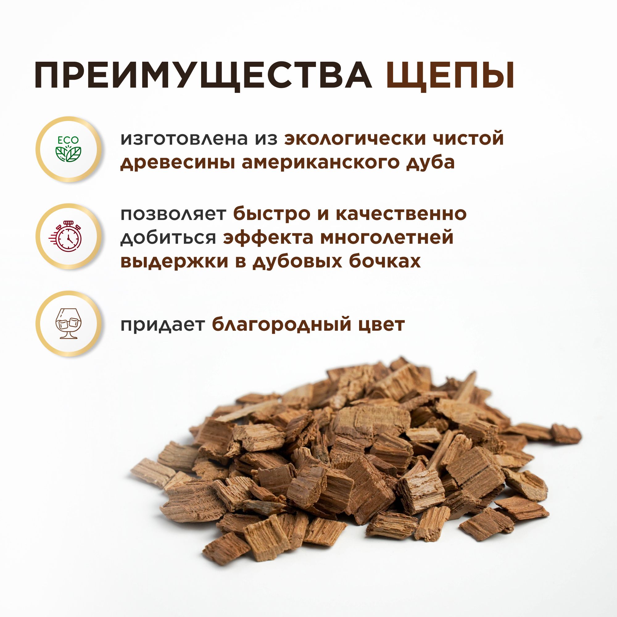 Щепа из американского дуба 100г (средний обжиг)