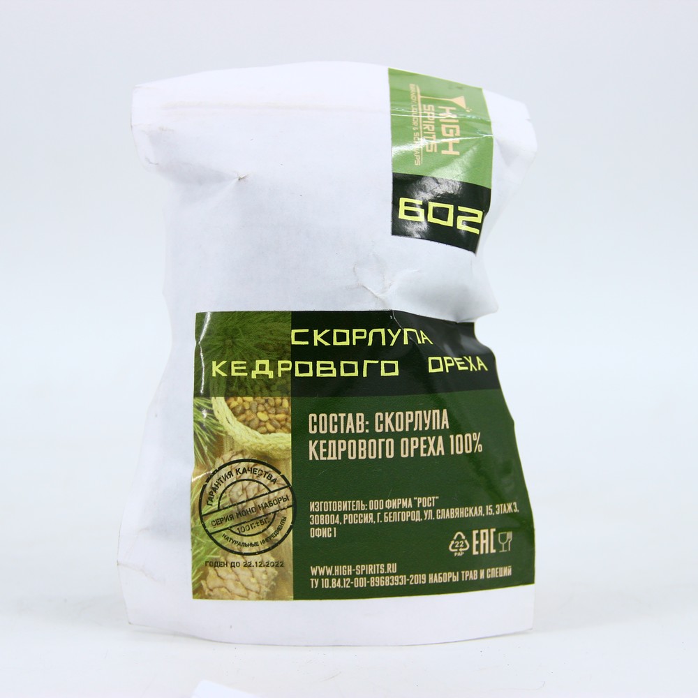 Хотите облагородить самогон, придать ему красивый цвет и приятный вкус, получив ту самую «кедровку», которую хвалят любители крепких напитков? Купите скорлупу кедрового ореха 602, 100 гр. Этого количества хватит для настаивания около 2,5 л дистиллята крепостью 40-45 градусов. Это недорогой способ получения вкусного, ароматного и приятного алкоголя, не вызывающего похмелья с утра. При этом истинные сибиряки считают «кедровку» целебным напитком, богатым на витамины и другие полезные элементы. Она отлично тонизирует, очищает от токсинов, улучшает состояние десен при пародонтозе и благоприятно влияет на суставы, поскольку скорлупа богата кальцием. Конечно, это не панацея от всех заболеваний, но чуток пригубить для здоровья рекомендуют даже врачи. Для получения достойного алкоголя потребуется только свежая скорлупа кедрового ореха лучшего качества – именно такую вы найдете у нас. А герметичная упаковка сохранит ее природную чистоту и натуральный биохимический состав.