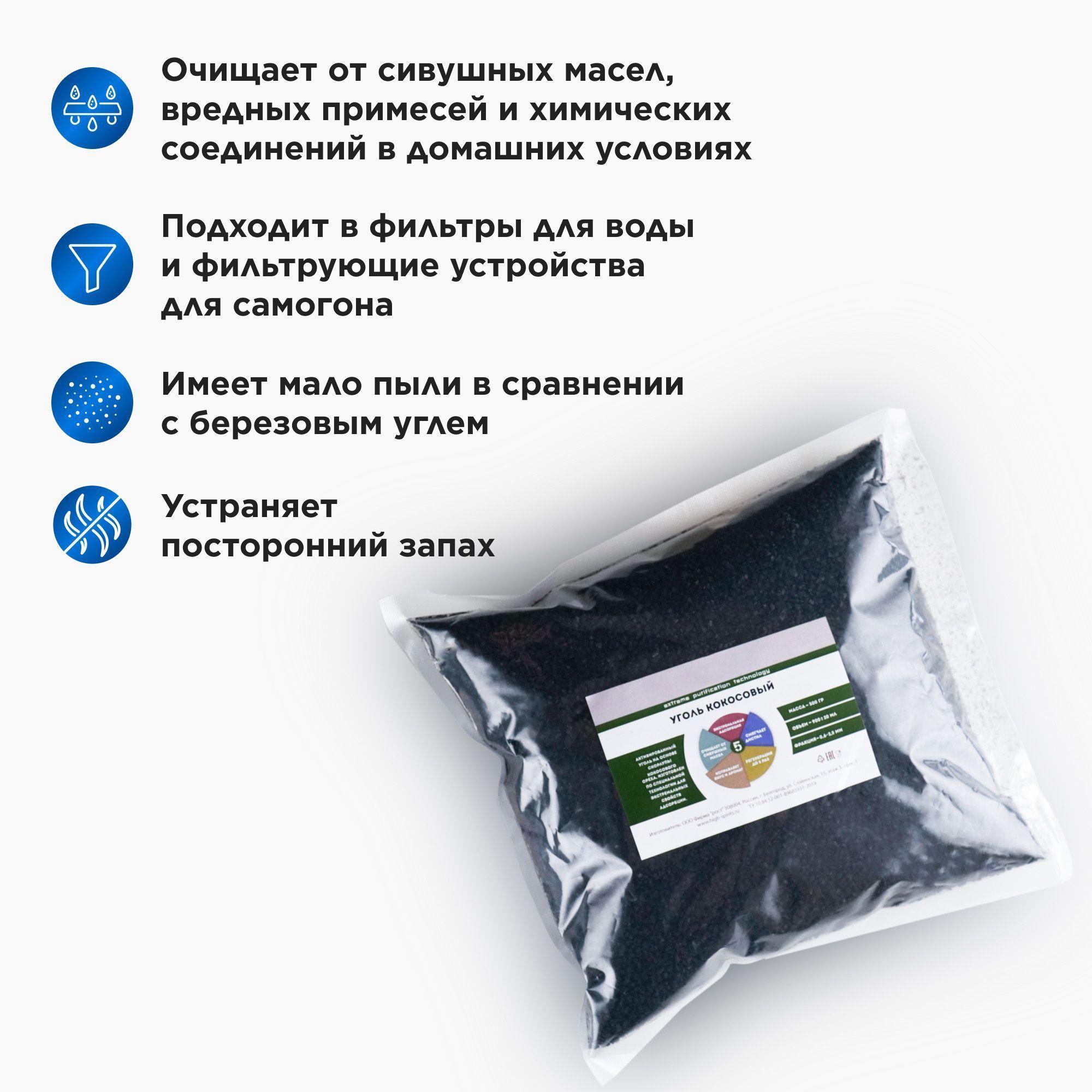 Уголь кокосовый активированный HyperPure Carbon 6*12 (1 кг.)