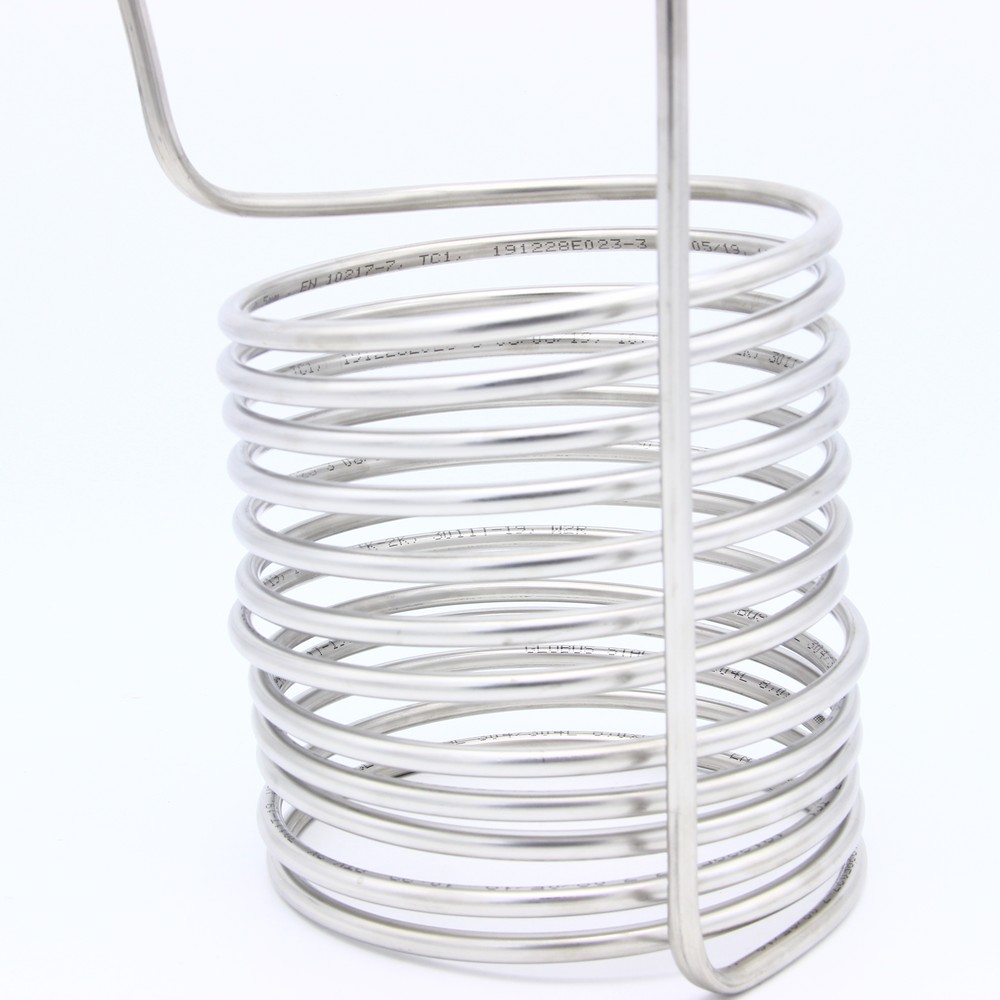 Чиллер погружной круглый 8 м позволяет достаточно быстро охладить практически кипящее пивное сусло перед добавлением дрожжей. По внешнему виду приспособление напоминает змеевик дистиллятора, а за счет того, что модель относится к погружному типу, она идеально подходит для применения в домашнем пивоварении. Ускоренное охлаждение достигается за счет увеличенной площади контакта с жидкостью и постоянной циркуляции холодной воды внутри элемента. Важность использования чиллера нельзя недооценивать. Он не только эффективно снижает температуру сусла до заданной отметки во избежание гибели дрожжей при их добавлении, но и уменьшает вероятность заражения пивной основы. При этом за счет быстрого охлаждения сусла удается избежать образования диметилсульфида, ухудшающего органолептику пенного напитка. Использование чиллера погружного круглого 8 м станет гарантией получения качественного пива с более ярким ароматом и вкусом!