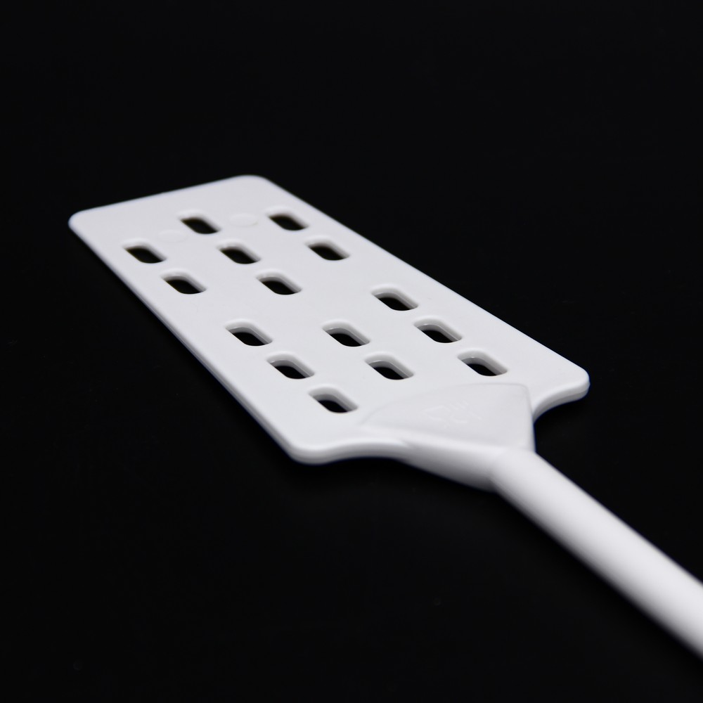 Белая лопатка-мешалка размером 50 см произведена из пищевого пластика, устойчивого к высоким температурам. Она просто незаменима в ситуациях, когда в браге происходит уплотнение зернового сусла или комкование ягод и фруктов, приводящих к приостановке процесса брожения. Длинная прочная ручка дает возможность с легкостью разбить затор даже в глубокой емкости. Форма изделия позволяет захватить со дна всю смесь, равномерно распределяя в жидкости, а симметрично расположенные отверстия – пропустить через себя, насыщая кислородом и активизируя деятельность дрожжей. Проводить манипуляцию желательно каждый день, пока сахара не превратятся в спирт. Лопатка мешалка 50 см хорошо моется, не требует особого ухода. Материал не впитывает запахи, абсолютно безопасен для здоровья и при контакте с вином или самогоном не выделяет вредных веществ. Не оставляет царапин и других механических повреждений на внутренних стенках ферментера.