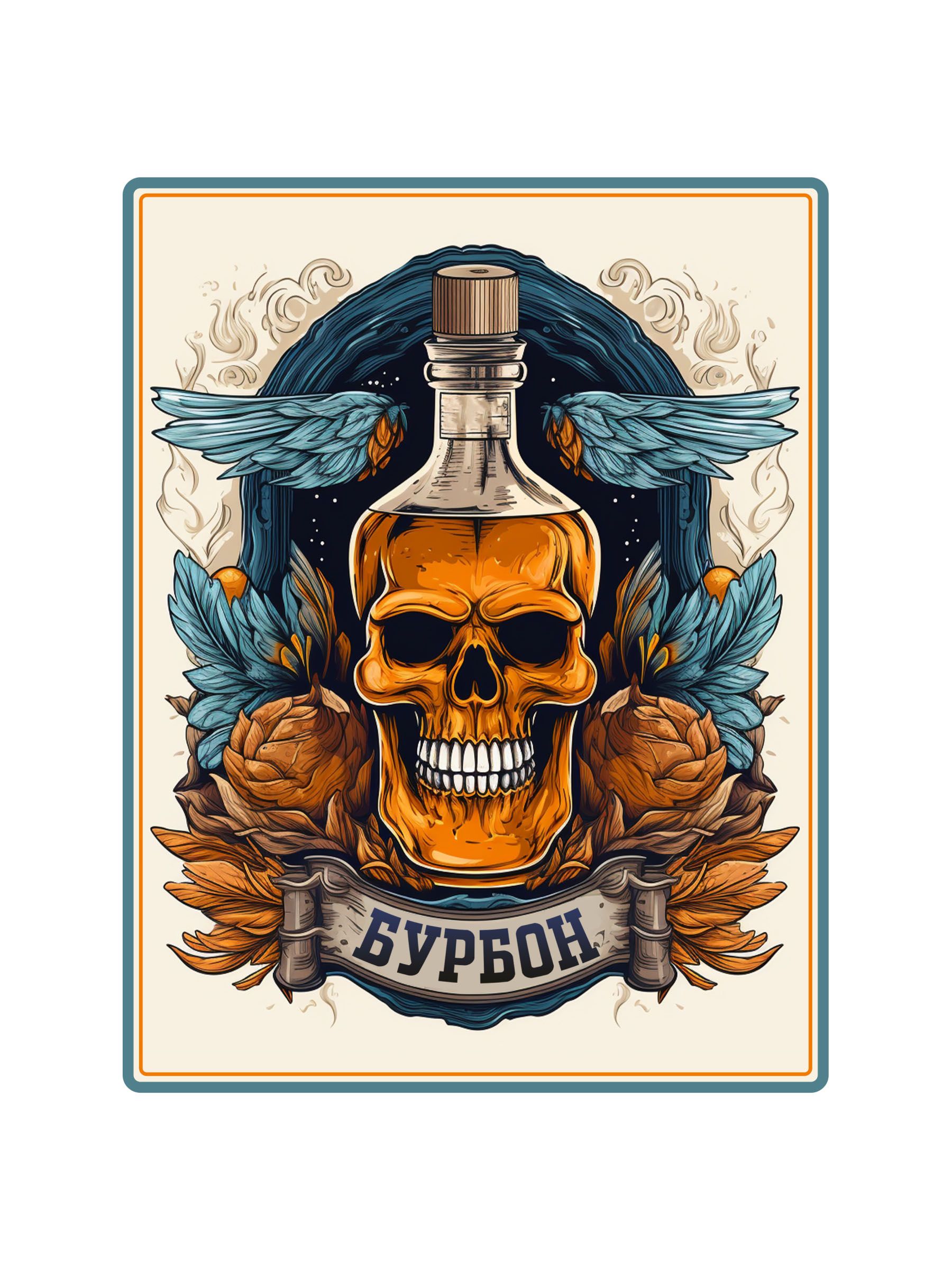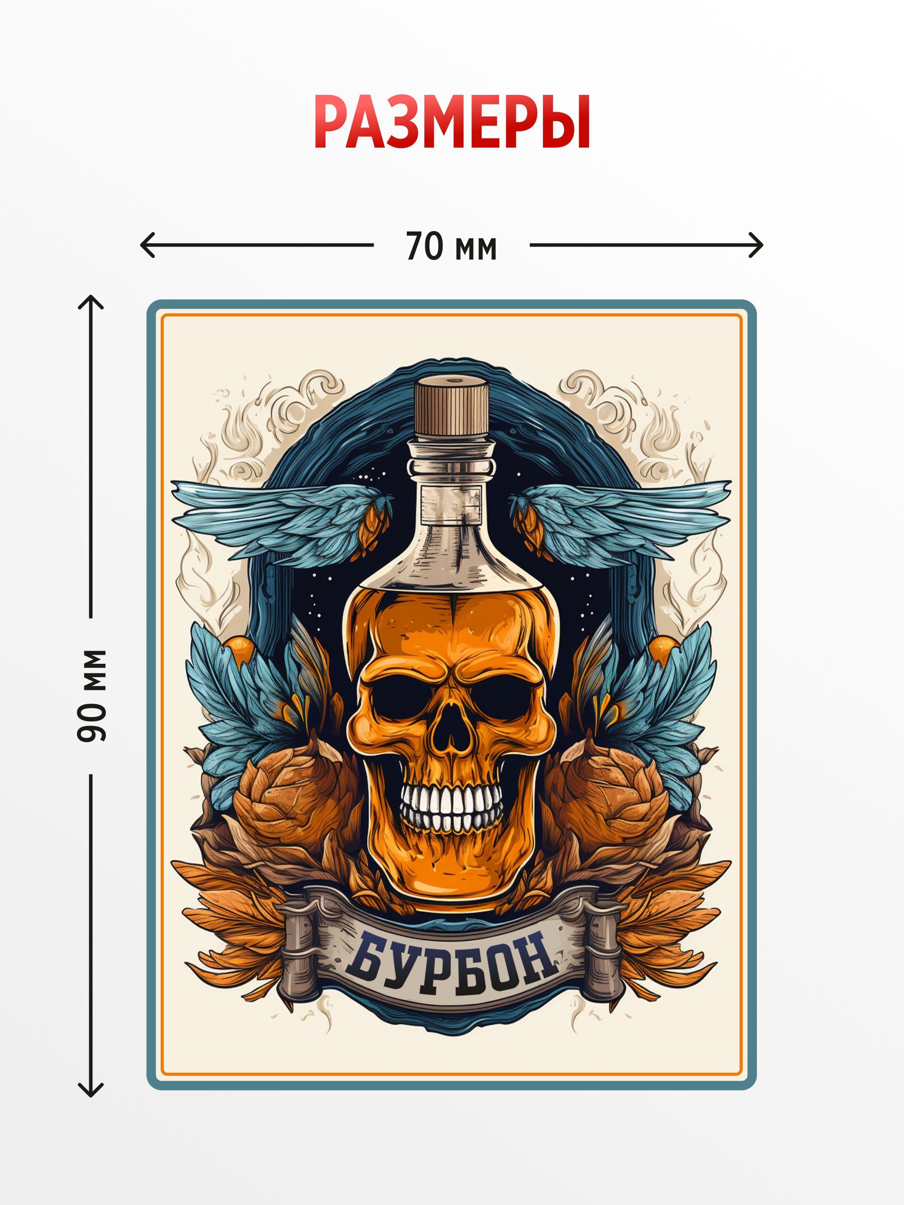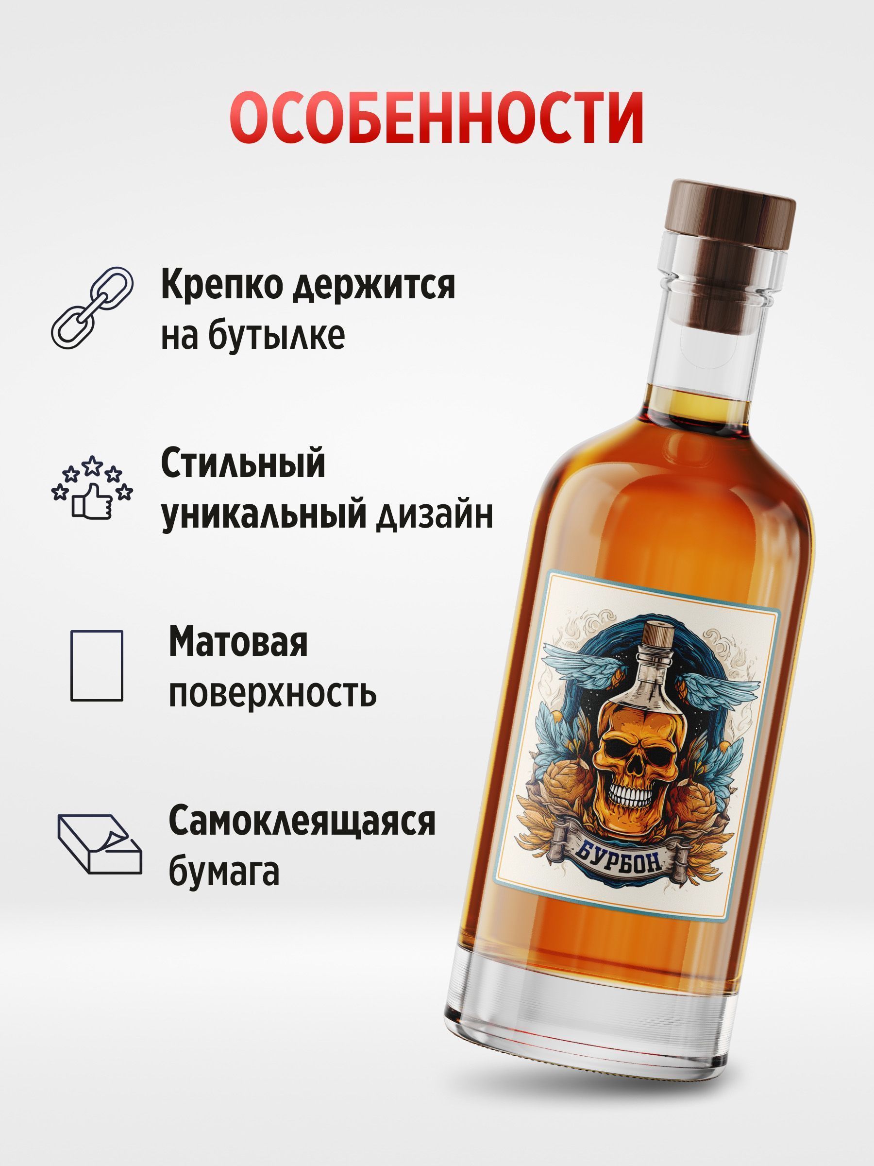 Наклейка на бутылку Бурбон 70х90 мм, 50 шт.