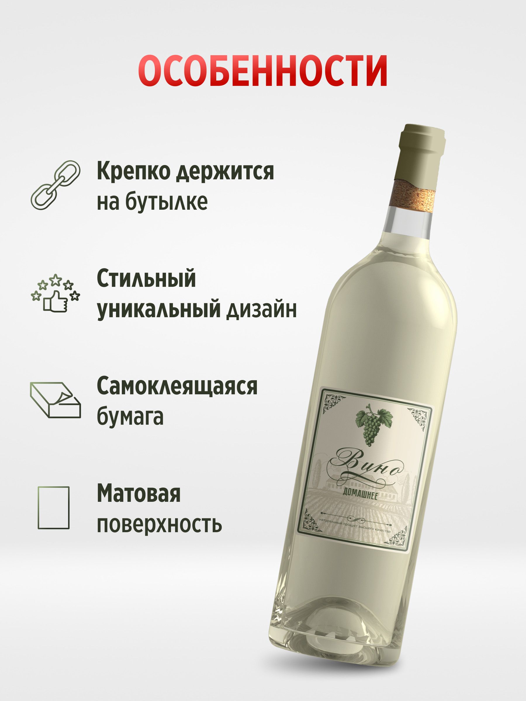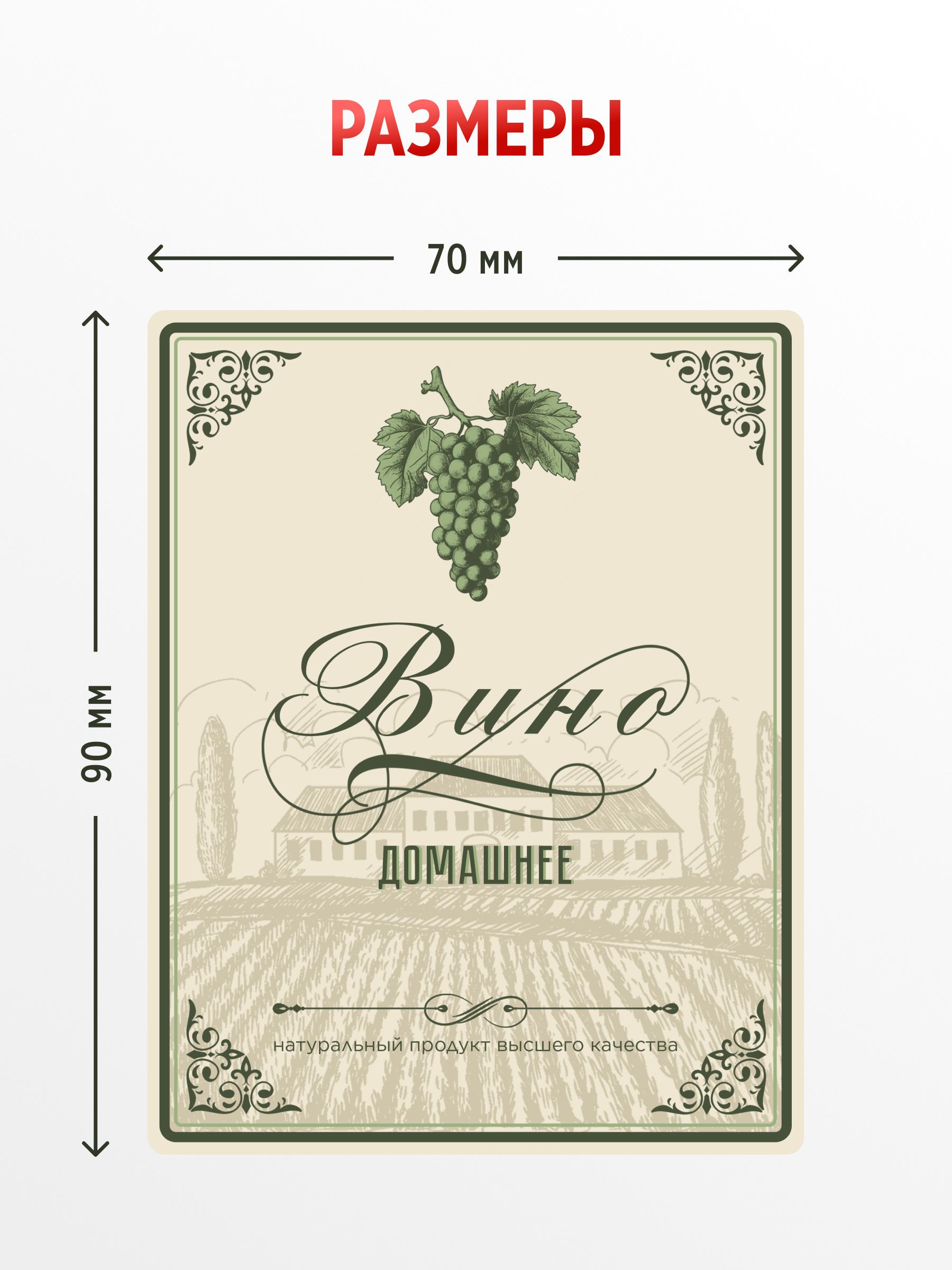 Наклейка на бутылку Вино белое 70х90 мм, 50 шт.