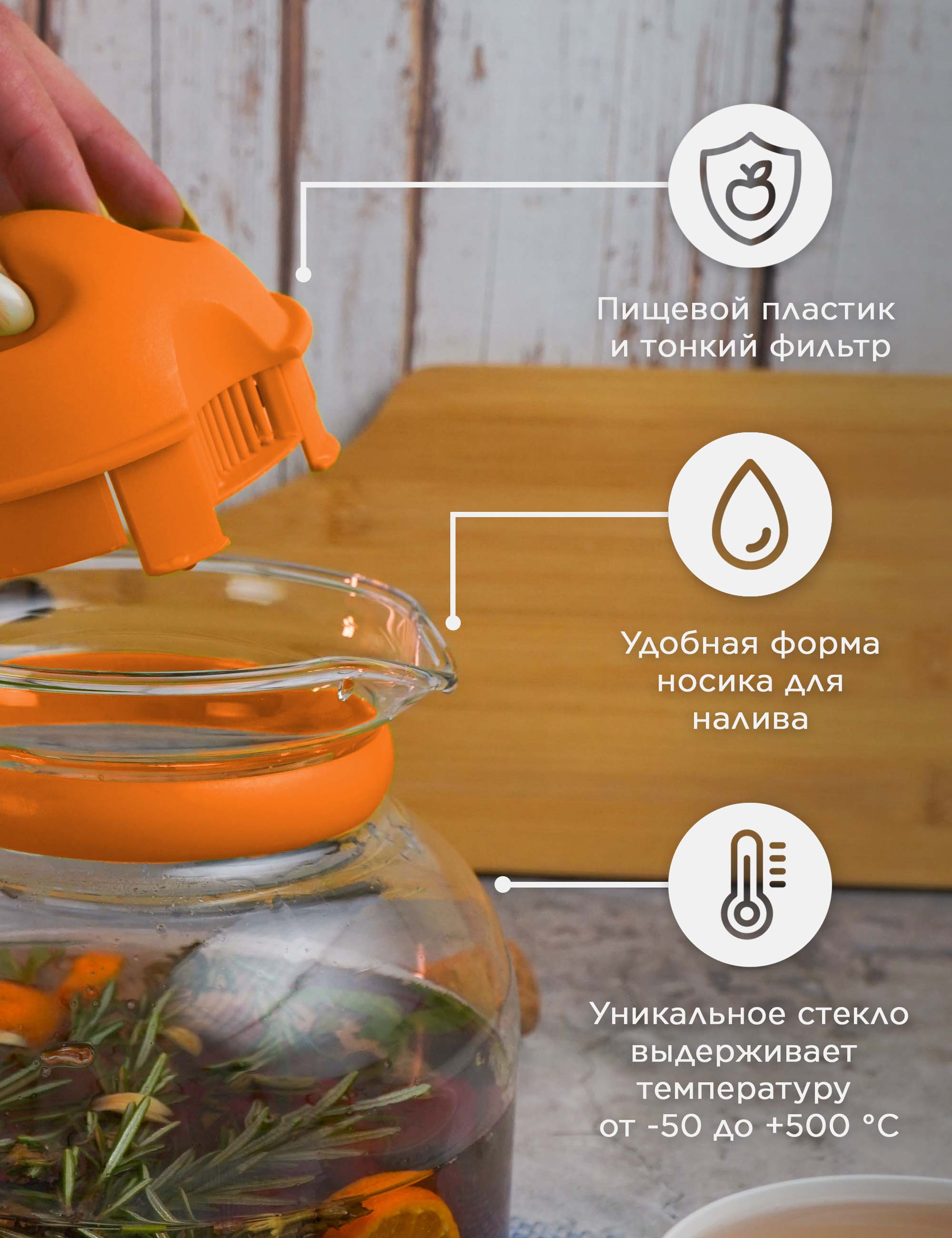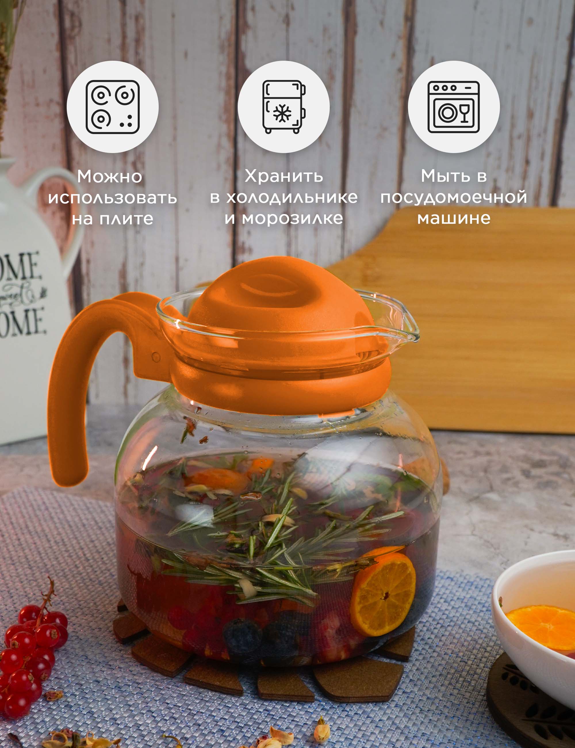 Стильный и практичный стеклянный чайник объемом 1,50 л станет прекрасным дополнением к вашей кухне. Благодаря жаропрочной стеклянной конструкции его можно использовать в микроволновой печи, а яркий оранжевый цвет придаст вашей кухне особый стиль. Вместительный объем 1,50 л гарантирует, что у вас будет достаточно горячей воды для любых нужд — от приготовления чая и кофе до готовки еды. Крышка легко открывается и закрывается, а эргономичная ручка обеспечивает удобство наливания. Этот стеклянный чайник — незаменимая вещь для любой занятой кухни!