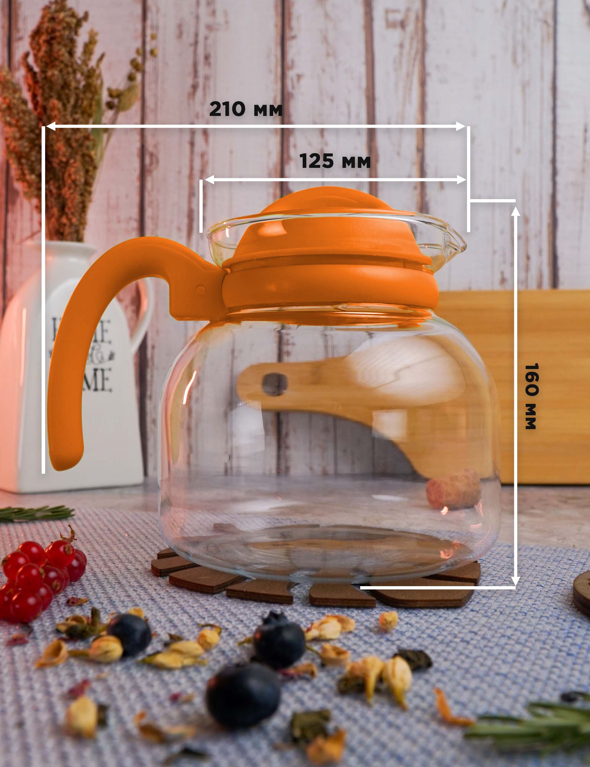 Стеклянный чайник 1,50л простой для микроволновой печи ОРАНЖЕВЫЙ