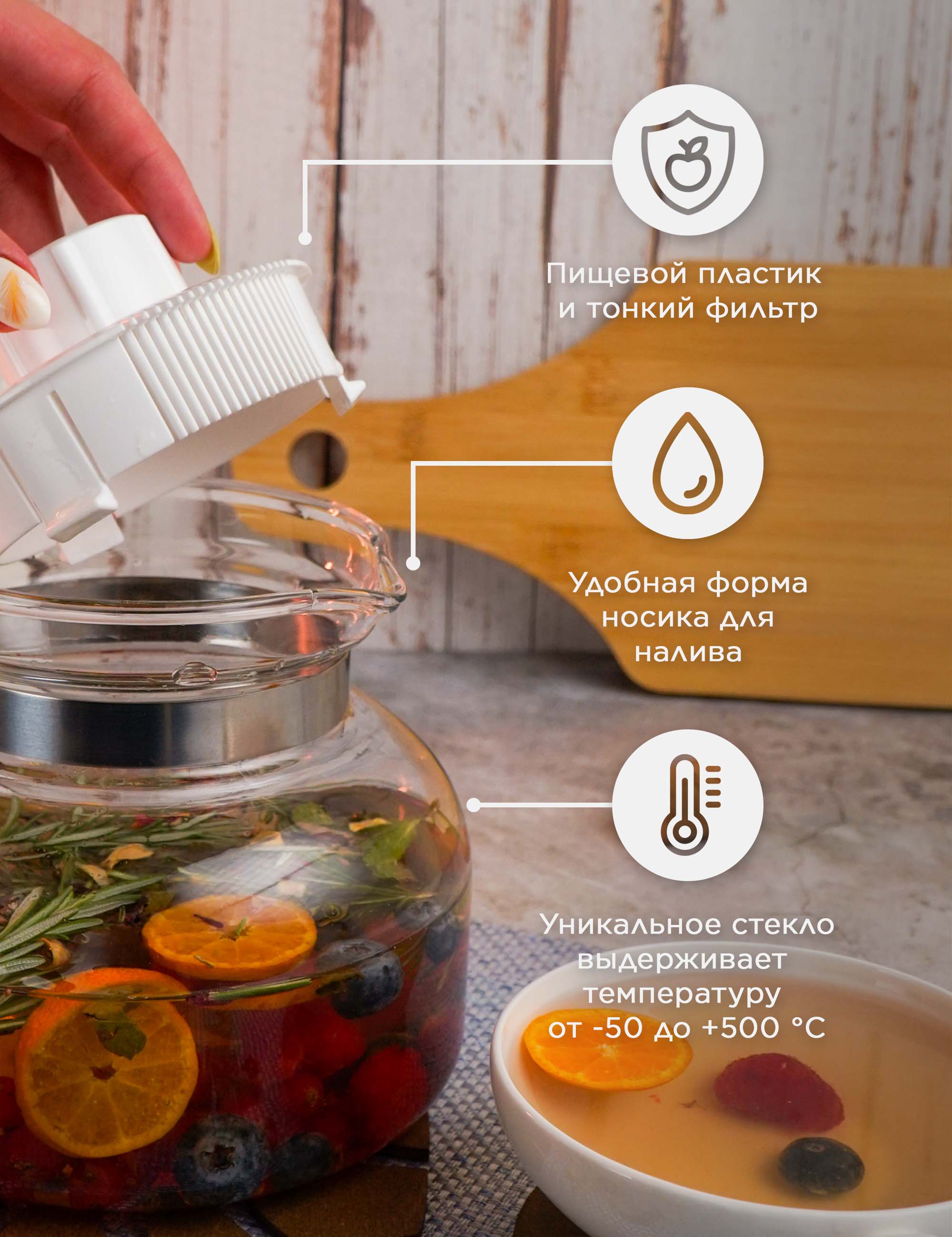Стеклянный чайник объемом 1 л станет прекрасным дополнением к любой кухне. Изготовленный из термостойкого стекла, он предназначен для использования в микроволновой печи и вмещает до 1 л жидкости. Его элегантный белый дизайн подойдет к любому декору кухни, а эргономичная ручка удобна для захвата. Чайник имеет широкий носик для удобного наливания, а его крышку можно снять для легкой очистки. Благодаря прочной конструкции этот стеклянный чайник прослужит вам долгие годы.