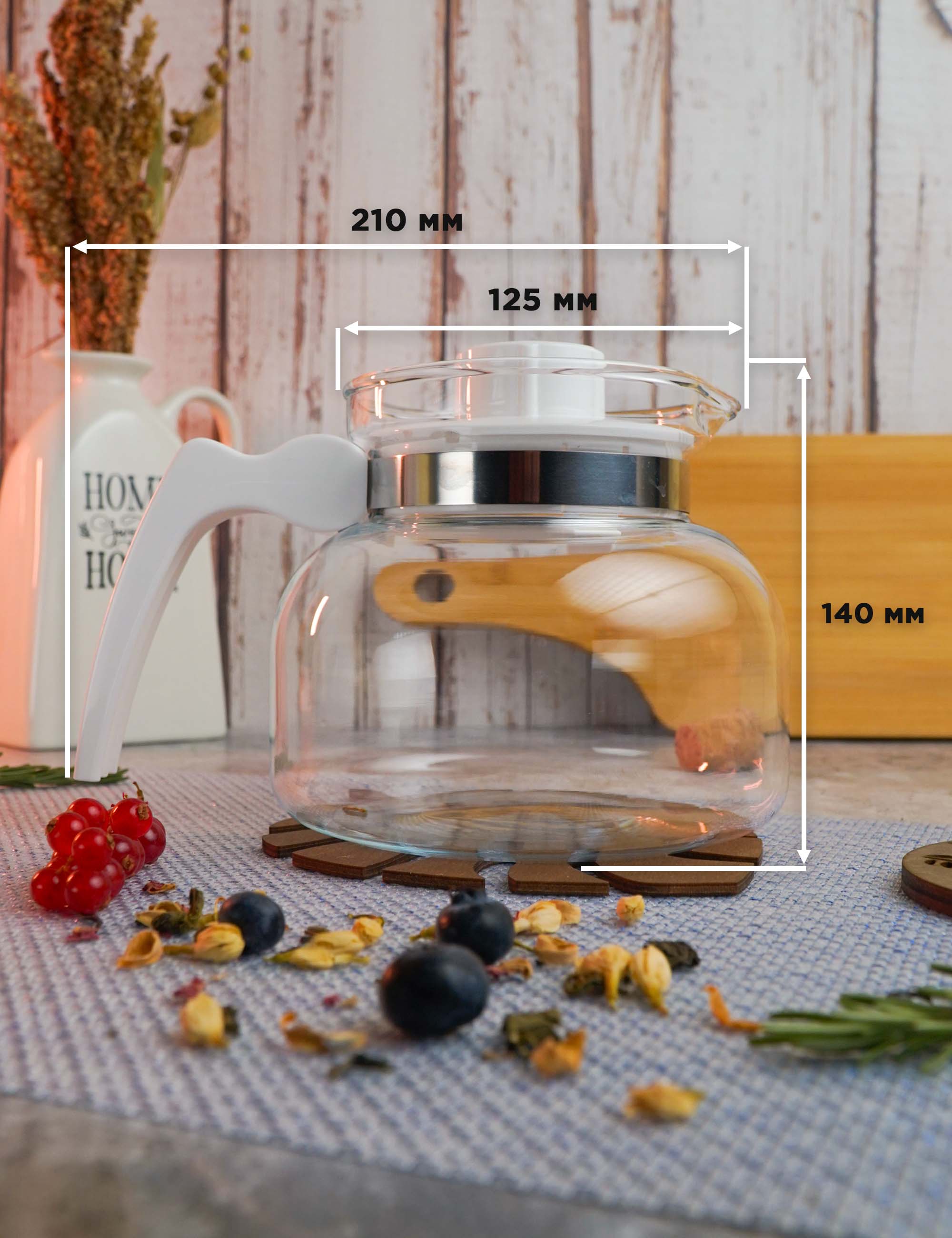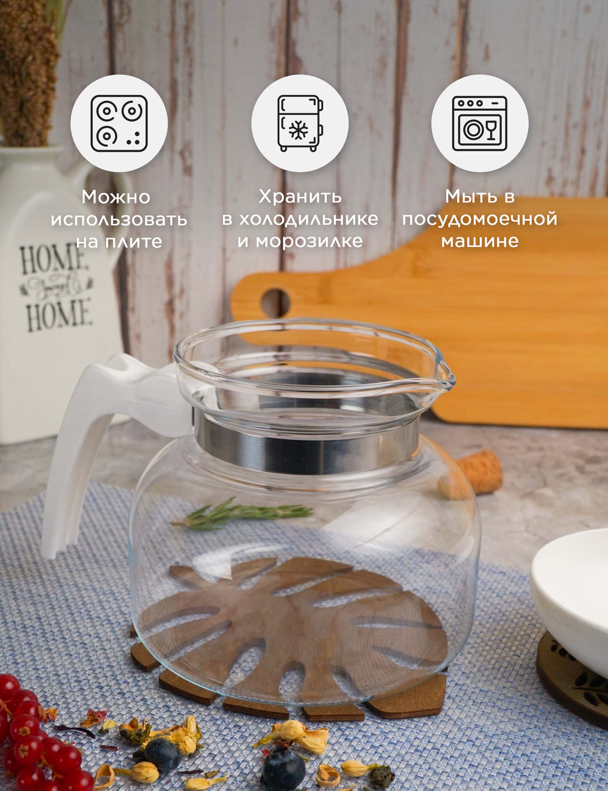 Стеклянный чайник 1л простой EWA БЕЛЫЙ