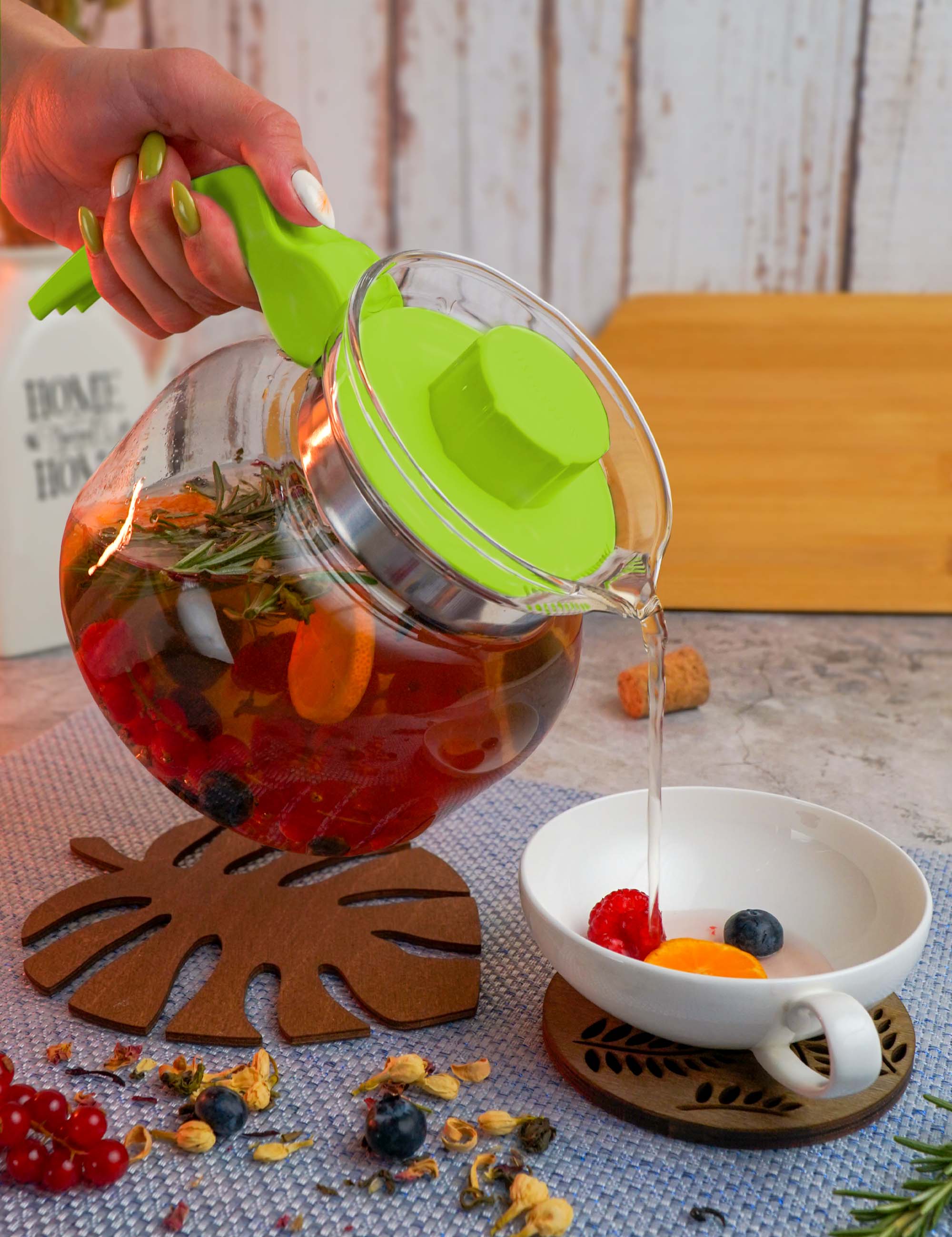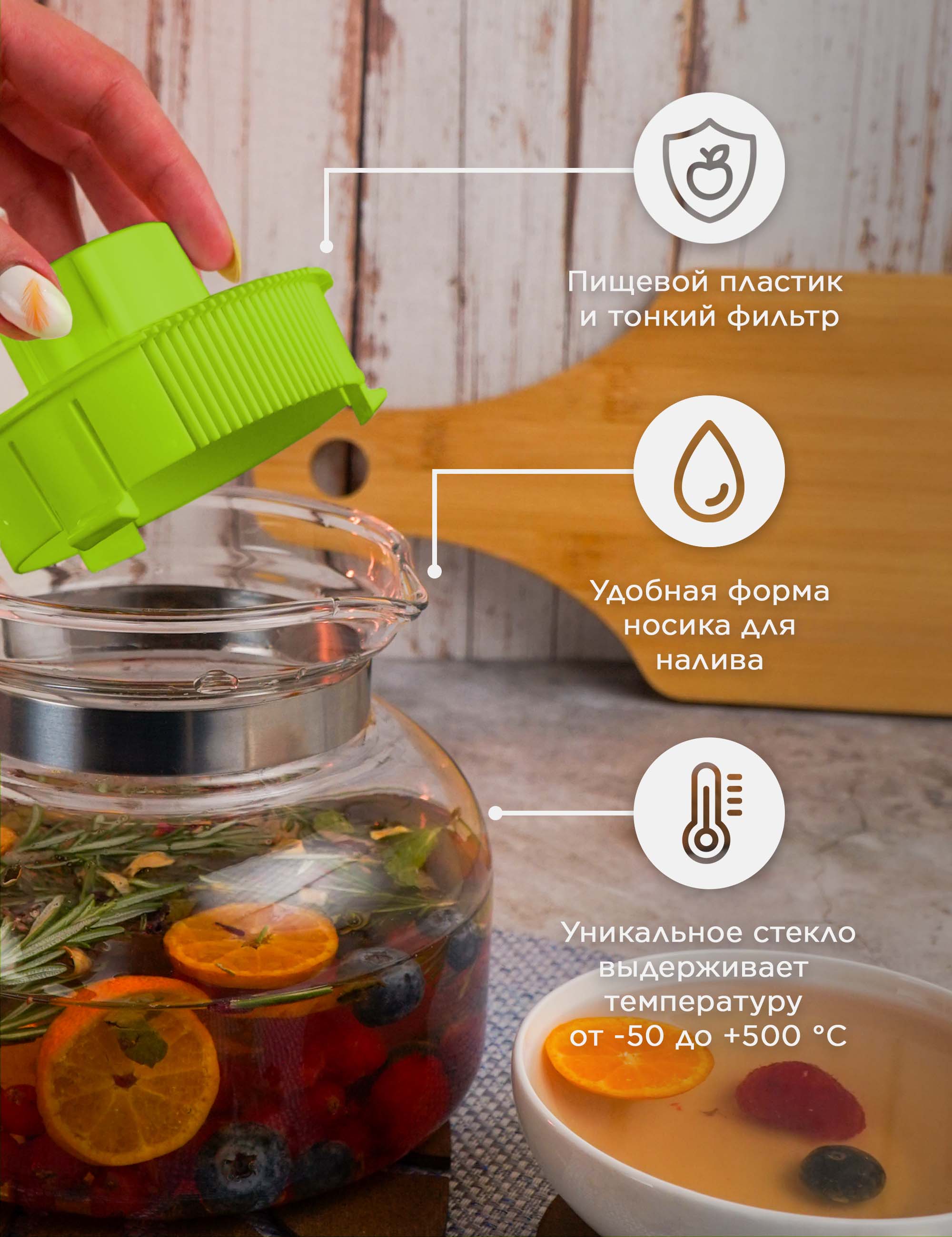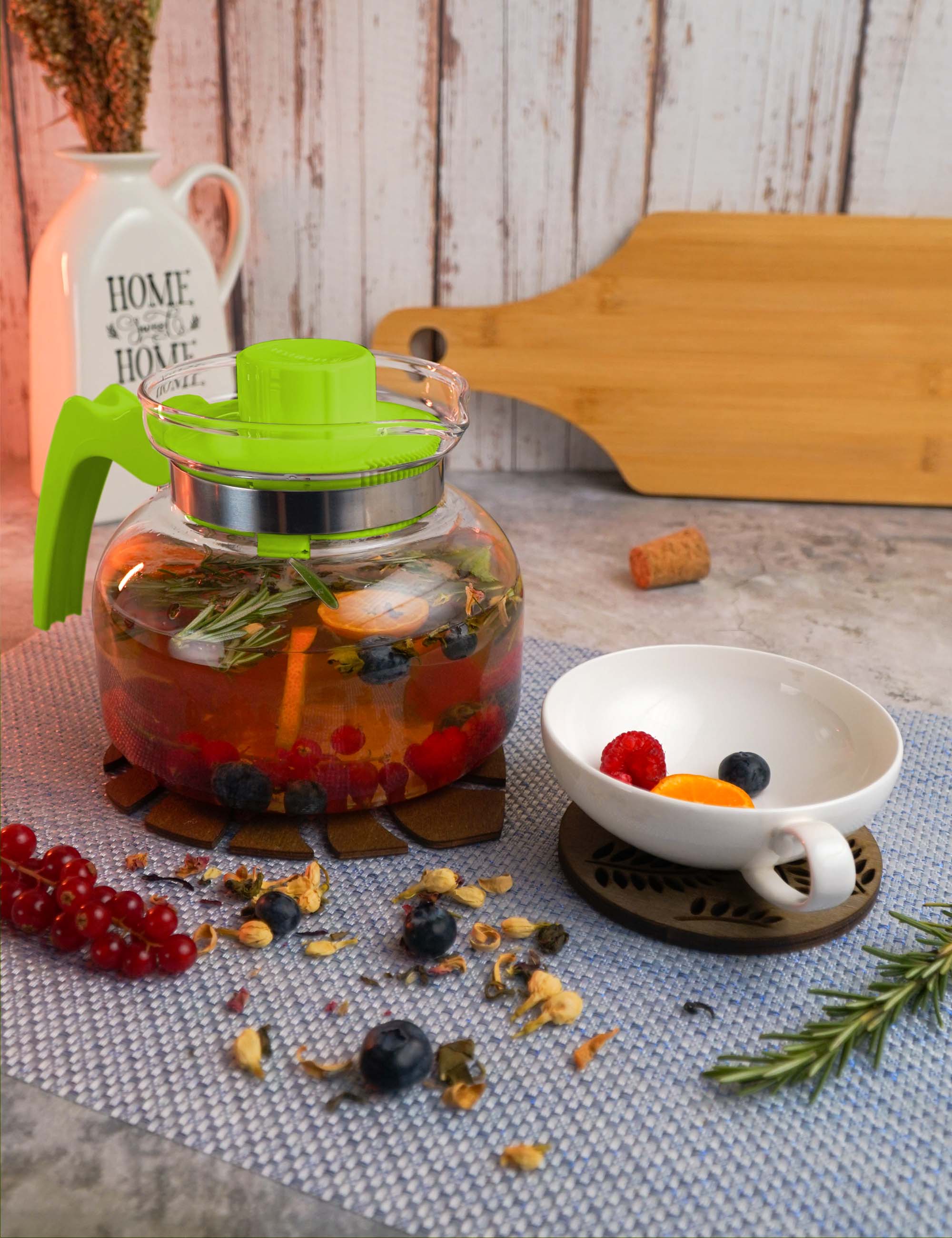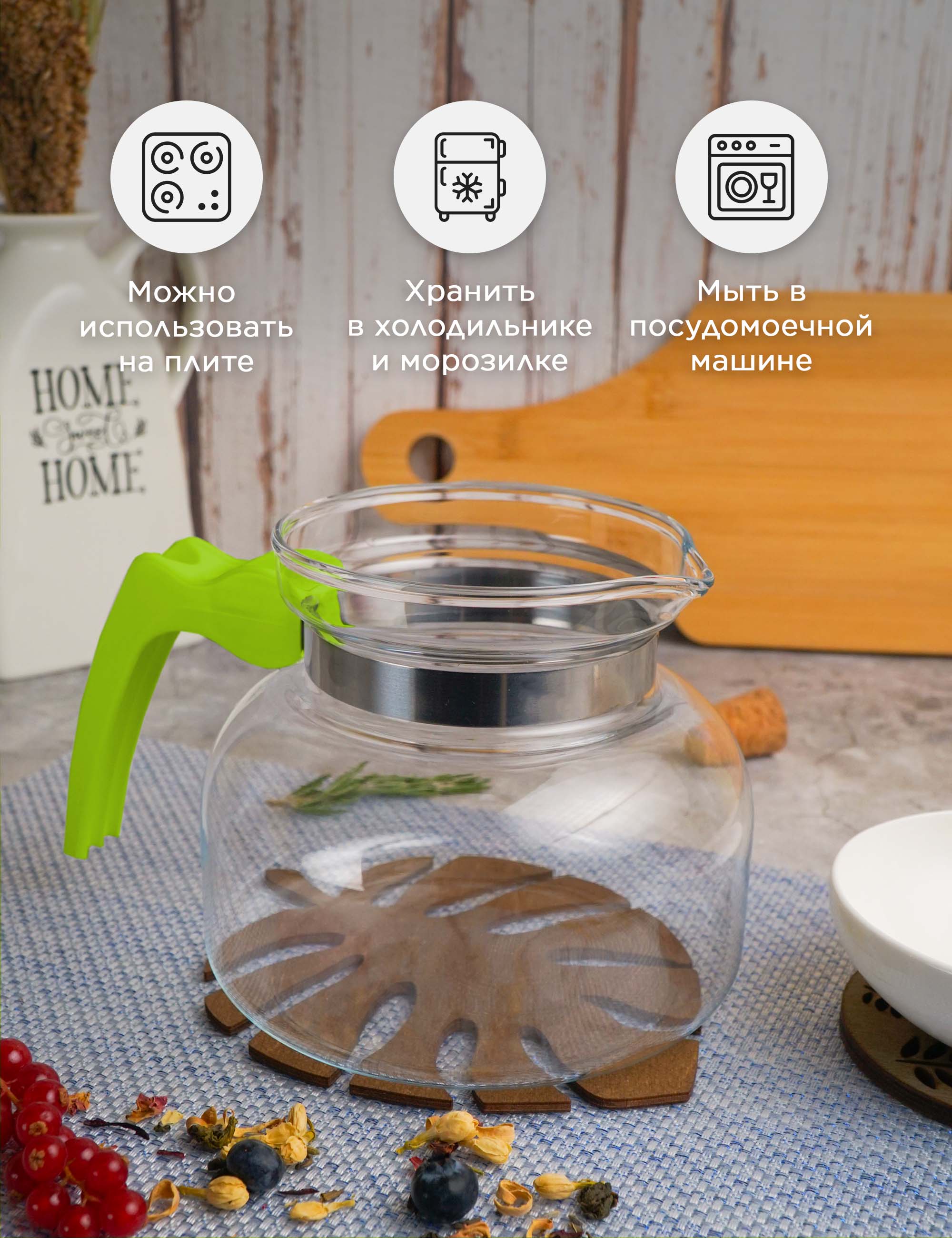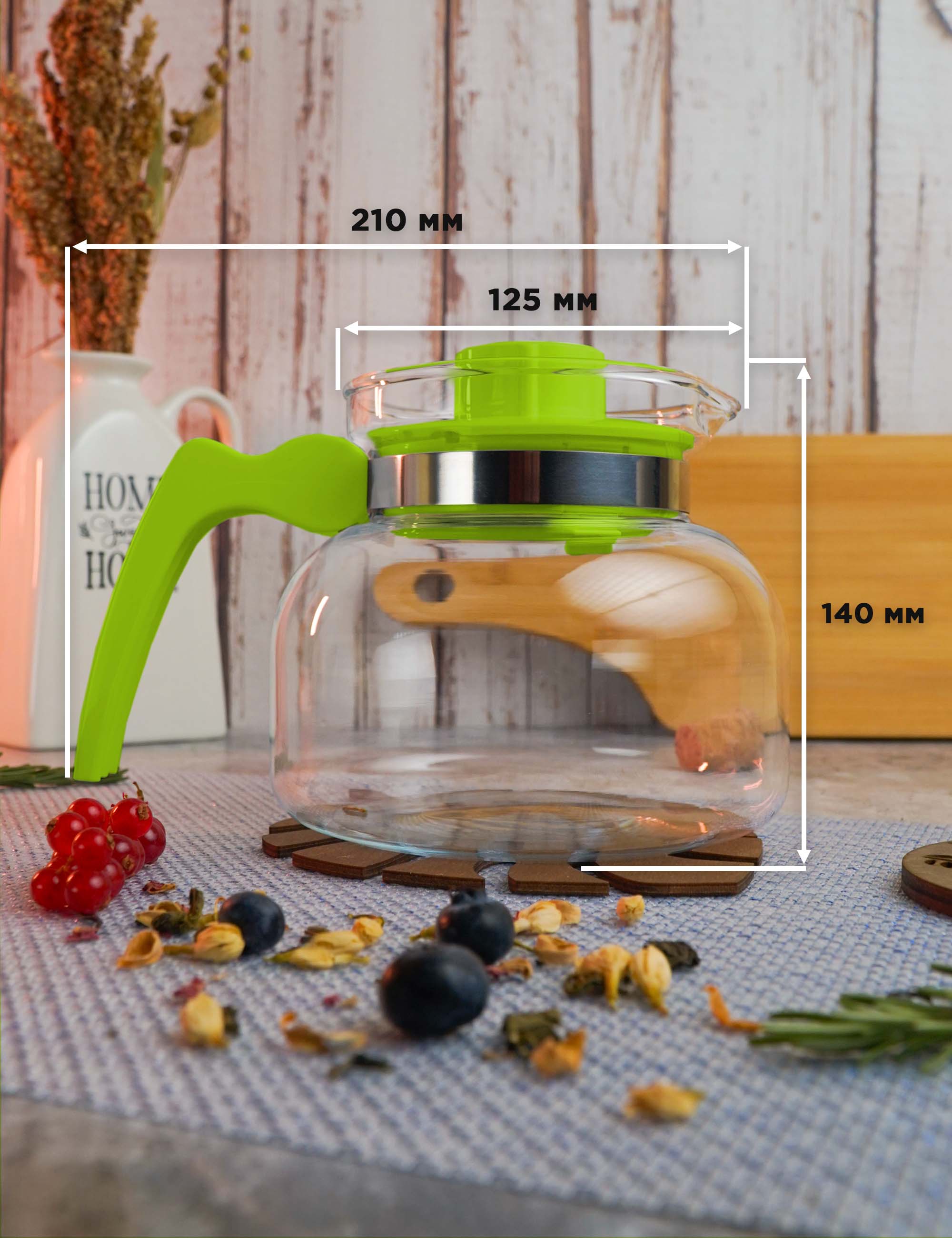 Стеклянный чайник 1л простой EWA ЗЕЛЕНЫЙ