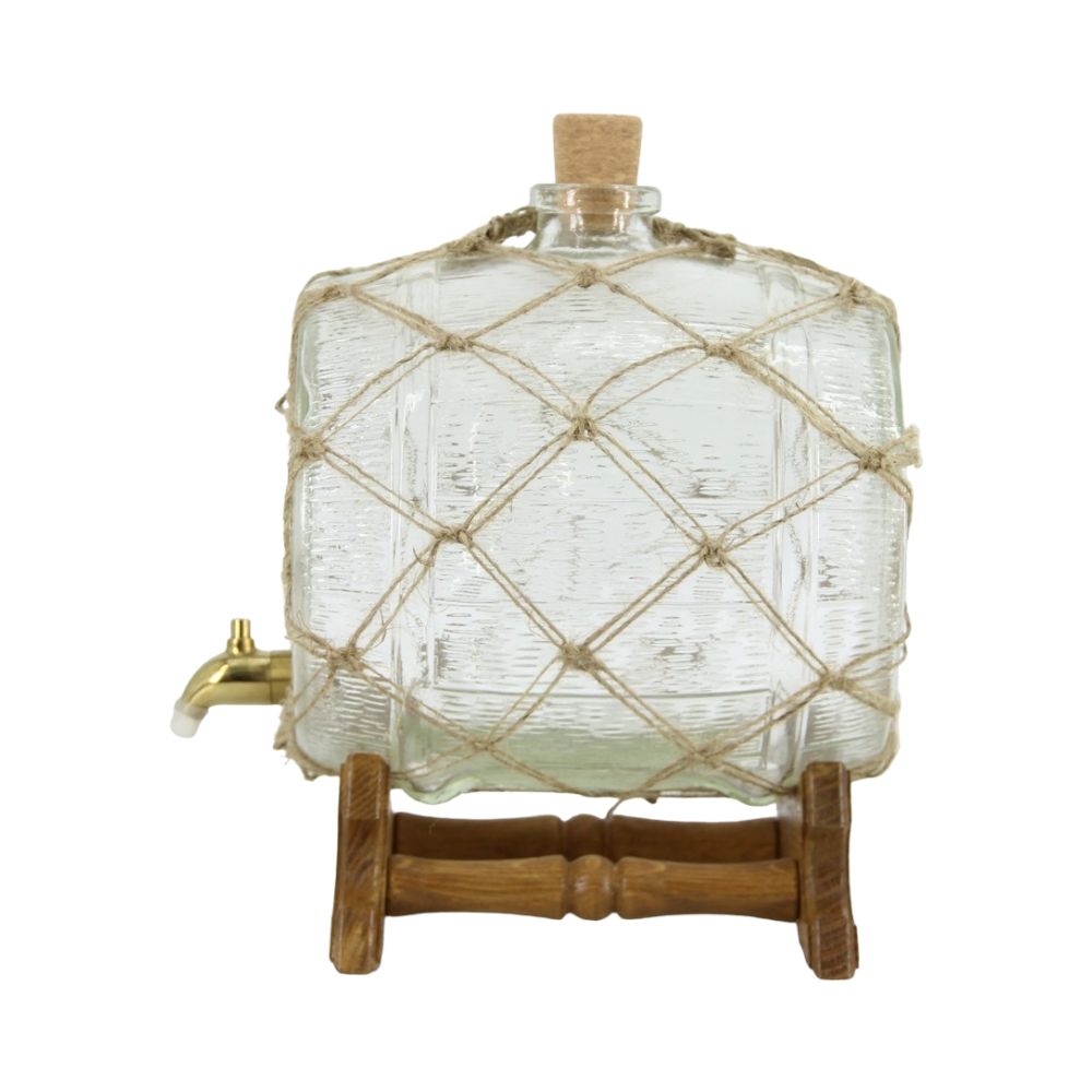 Бочонок 3,8 л. стеклянный в сетке с краном