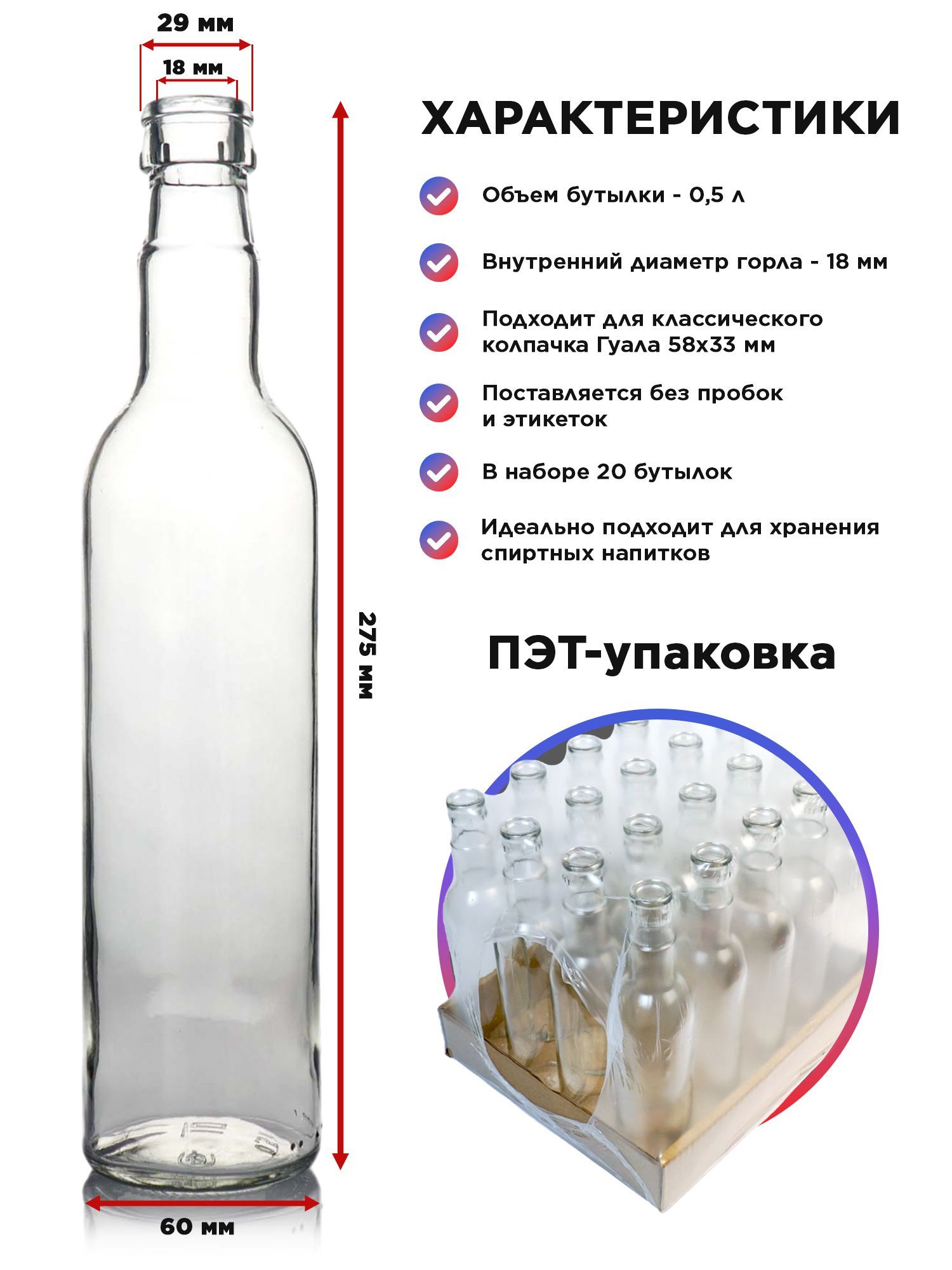 Набор бутылок Гуала 0,5л (20шт. в пленке) – один из самых бюджетных вариантов для розлива домашнего алкоголя. Представленный набор подойдет тем мастерам винокурения и производства самогона, кто уже перешел этап экспериментов и личного хобби, и готов активно делиться своим продуктом с друзьями и родственниками. Чем больше вы раздаете самогона – тем острее встает вопрос розлива, поэтому, чтобы не терзать любителей крепкого алкоголя требованием возврата тары – можно просто купить набор бутылок Гуала 0,5 л (20 шт. в пленке). Заказывая набор, вы получаете эстетичные бутылки по цене мелкого опта (найти предложения дешевле при сопоставимом качестве практически невозможно). Гуала долгое время остается хитом продаж, благодаря удачному дизайну и доступной стоимости. Можно заказать несколько наборов в пленке и разлить бочку выдержанного зернового дистиллята за один раз, получив партию готового к отгрузке напитка. Набор бутылок Гуала 0,5л (20шт. в пленке) также выгодный вариант для покупателей из регионов – при доставке