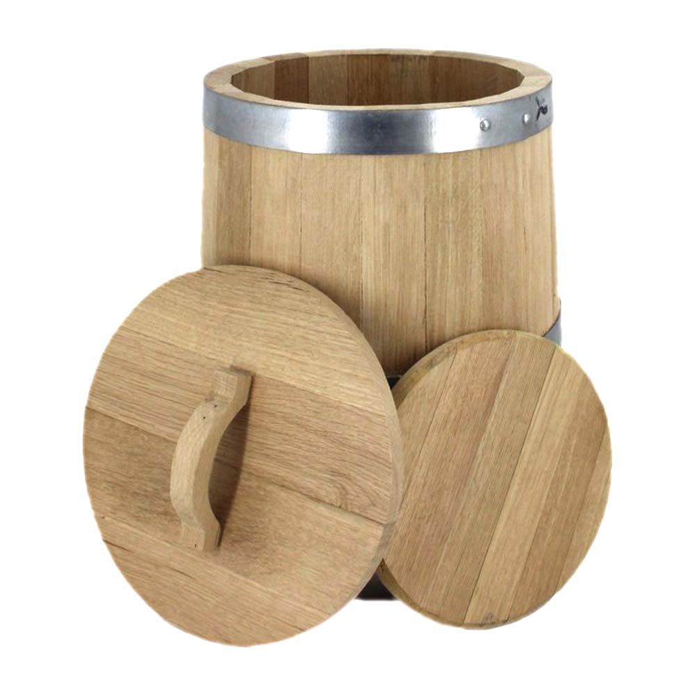 Кадка из кавказского дуба 20 л (Премиум) – это отличный выбор для людей, которые готовят различные разносолы на зиму. Она хорошо подойдет для квашения капусты, помидоров, мочения яблок, соления огурцов и других овощей. В древесине кавказского дуба содержится большое количество танина и дубильных веществ, которые обладают консервирующими свойствами. Они предупреждают размножение плесени и микроорганизмов, поэтому вы можете быть уверены, что ваши соленья сохраняться на протяжении все зимы. К тому же овощи будут иметь невероятный вкус. Однажды попробовав солить в кадке из кавказского дуба, вы больше не вернетесь к другим методам. Древесина отличается высокой прочностью. Со временем дуб не растрескивается и не деформируется, поэтому кадка сможет вам прослужить долгие годы. Не стоит волноваться о безопасности солений, ведь для производства кадок используется только натуральная древесина и металлические обручи. Никакого клея и различных токсичных добавок! Кадка из кавказского дуба 20 л (Премиум) – это отличная тара
