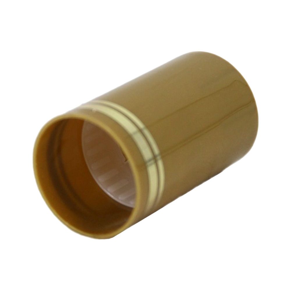 Колпачок Гуала 33*58 (С) Золотой - практичная, стильная и герметичная крышка для ликеро-водочных изделий. Состоит из полиэтиленового удлиненного цилиндра, пластмассового механизма дозации и корпуса с защитой от вскрытия. Все материалы безопасны и рекомендованы для пищевой промышленности. Колпачок быстро и плотно одевается и вручную, и с помощью конвейерной линии. Сочетание темно-золотого матового фона и глянцевой золотой полосы по краю цилиндра смотрится стильно и лаконично. Колпачок Гуала 33*58 (С) Золотой позволит нанести брендовую информацию, сроки годности и наклеить акцизную марку.
